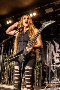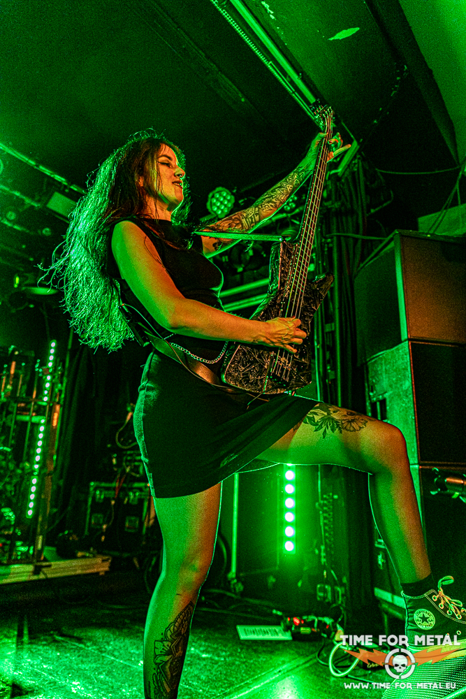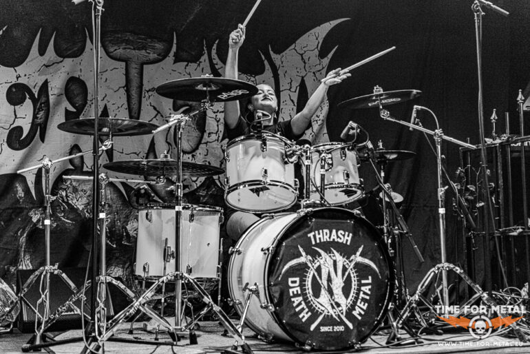 Um 20:30 Uhr ist dann Frauenpower mit Nervosa aus São Paulo geboten. Eine gehörige Ladung Thrash prügelt auf die Menge ein, die Band macht mächtig Druck und ihre Fans sowieso. Sängerin Prika Amaral überzeugt nicht nur mit ihren langen, blonden Haaren, sondern auch mit ihrer Growl-Stimme, die sie vielseitig einsetzt, um Akzente bei ihren Songs zu setzen. Für mich fast etwas zu viel Thrash, aber das Publikum feiert Songs wie Seed Of Death, Behind The Wall, Kill The Silence, Under Ruins oder Jailbreak und auch nach 45 Minuten hat die Menge immer noch nicht genug von Prika & Co., die sich über soviel positives Feedback sichtlich freuen. Sie versprechen, dass man sich spätestens bei der Tour von Testament und Obituary wiedersieht – zur Freude der Anhänger von Nervosa und so manchem neuen Fan nach diesem Abend. Die Brasilianer sind wohl die Überraschung bei dem Konzert, das durchweg – trotz der Hitze und der Enge – musikalisch und auch soundtechnisch überzeugen kann.