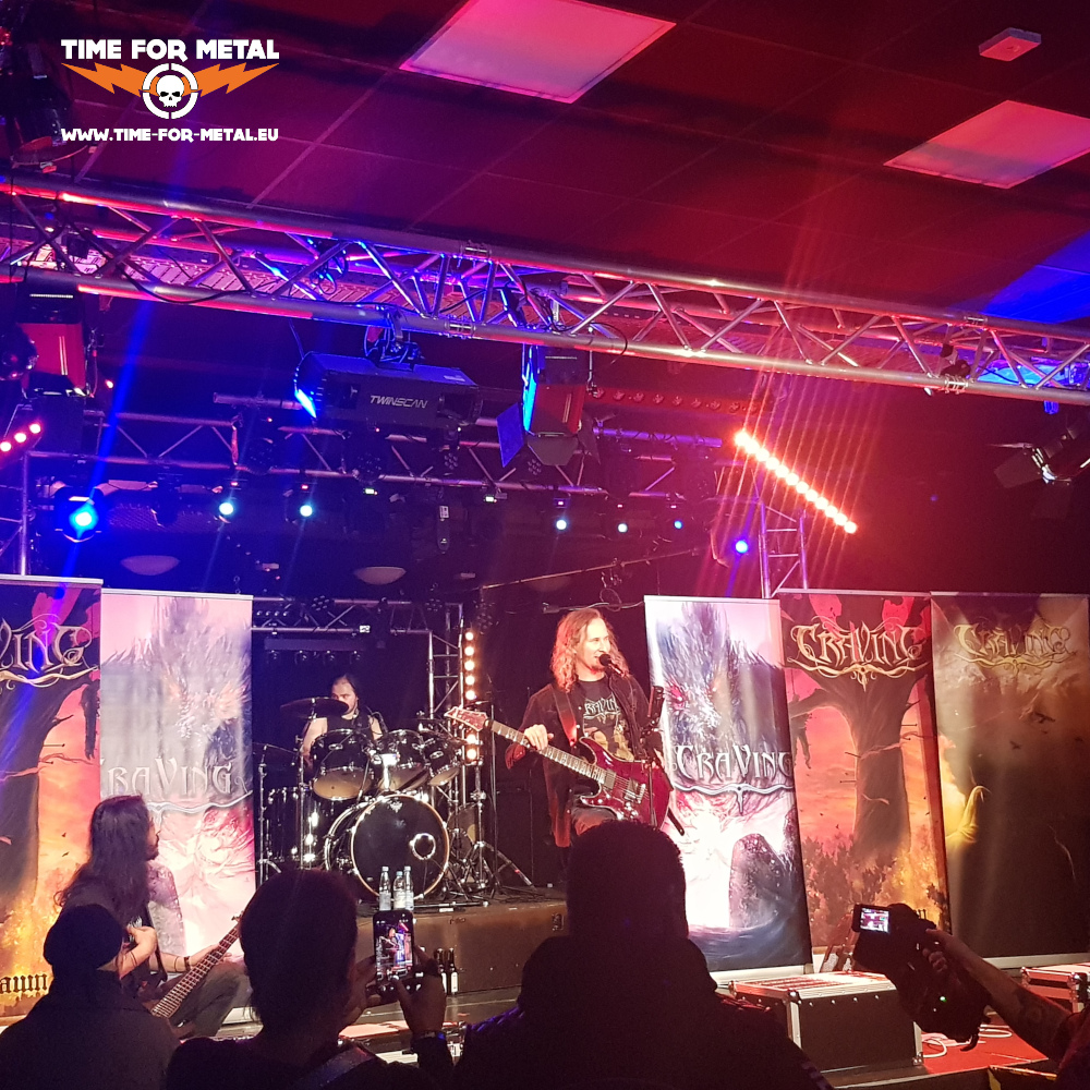 Craving spielen heute ein Set mit jüngeren Werken, welches die Klassiker der letzten Werke verbindet. Die warme Stimmung lädt das Publikum sofort zum Mitmachen ein, schließlich wurde die Band vor 20 Jahren in Oldenburg gegründet und gehört auch heute noch trotz Umzügen in andere Regionen Deutschlands zu einer festen Szenegröße der Huntestadt. Während der Track The Storm mit rhythmischem Klatschen eröffnet wird, fängt die Band mit professionellem Equipment die Show für die Nachwelt ein. Die Setlist des heutigen Live-Auftritts enthält unter anderem Death March als Opener, gefolgt von Kitsune und Wielder Of Storms, das am zweiten Abend seinen Platz bekommt. Der starke Hit Blood Of Franconia darf ebenso wenig fehlen wie deutschsprachige Stücke, die voller Wut und Energie sind. Den Abschluss machen Call Of The Sirens und Wenn Der Wind Sich Dreht. Um kurz nach Mitternacht beenden Craving den zweiten Headliner-Tag, während der erste Tag eher im Old-School-Stil gehalten wurde. Beide Abende sind gespickt mit Emotionen und einem würdigen 20. Geburtstag im gut aufgelegten Cadillac in Oldenburg, in dem die Reise begann und heute mit einem weiteren Höhepunkt der Karriere in ihrer alten Heimat folgt.