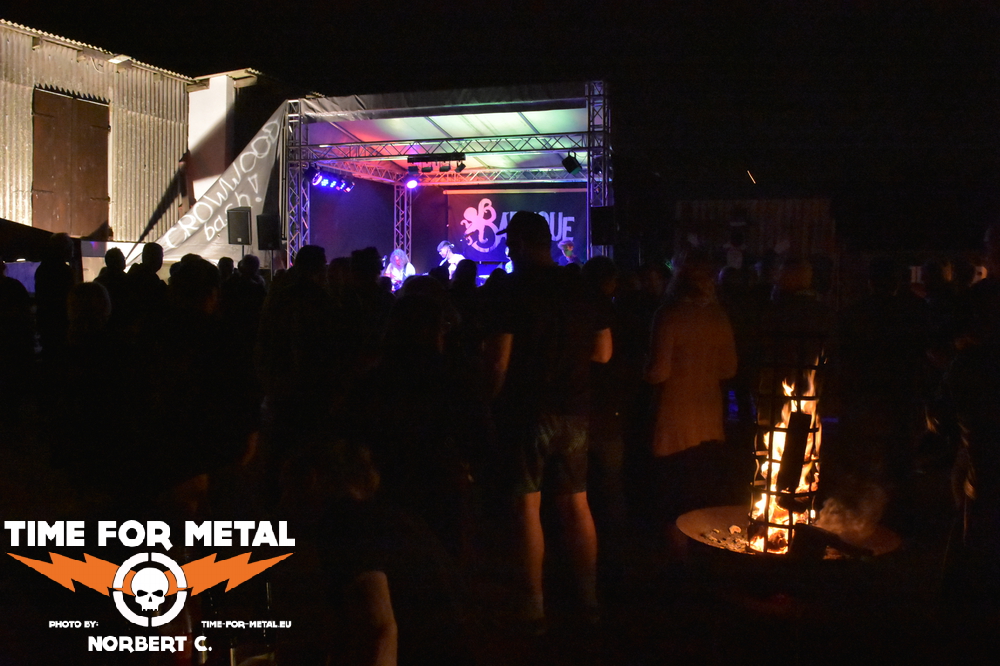 Fazit: Aufwendige Beleuchtung und Nebelmaschinen gibt es natürlich nicht auf der Bühne. Der Weg ist mit Feuerschalen gesäumt, überall Aschenbecher, „Beugelbuddelbeer“ und es herrscht trockenes und warmes Wetter. Das Ambiente ist toll, die Gäste halten den Hof absolut müllfrei. So kann und soll Festival. Der regionale Nachwuchs mischt sich mit bewährten Kräften und bekommt einen neuen Hörerkreis. Wer mag, übernachtet auf dem Parkplatz. Ohne Party, ohne Auflagen, ohne Zwang, ohne Kosten, aber auch ohne Sanitär oder Luxus. Ich liebe solche privaten Festivals, bei denen man das Herzblut, das darin steckt, spürt. Ich hoffe beim nächsten CrownWood Bash! wieder dabei sein zu dürfen!