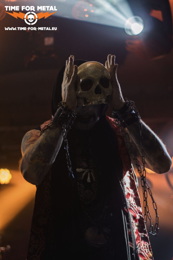 Der steht auch schon nach ein paar Umbauten und Dekorationsarbeiten auf der Bühne. Seth haben letztes Jahr mit dem Album La Morsure Du Christ überrascht. Nicht nur, weil es länger ruhig um die Franzosen gewesen ist, sondern auch, weil das Album, das sich mit dem Niedergang des Christentums durch den Brand von Notre Dame befasst und auch musikalisch konnte es überzeugen. Das Albumcover findet sich auch auf der Bühne und im Merch der Band immer wieder. Als Headliner des diesjährigen De Mortem Et Diabolums passen sie perfekt. Mit viel Stimmung und Energie fegen die Black Metaller über die Bühne. Auch hier dürfen ein paar Szeneklischees nicht fehlen. Totenschädel und große dramatische Gesten zu großartiger Musik – was will man mehr? Ein mehr als gelungener Abschluss!