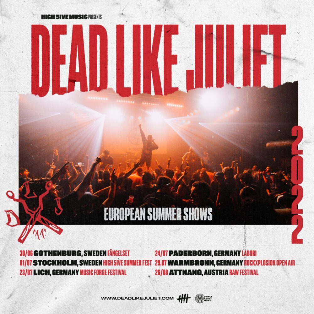 Italiens Metal-Hardcore Bollwerk Dead Like Juliet kündigen ihre Sommer-Shows an. Mit dabei sind Auftritte auf dem High 5ive Summer Fest in Stockholm, Schweden und dem Music Forge Festival in Lich, Deutschland.