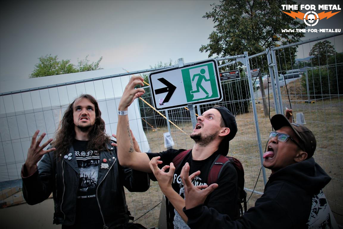 Brutal Sphincter sind auch schon am spielen, als ich das Infield betrete. Auf dem Infield ist es schon wieder richtig gut voll. Wirklich noch mehr als letztes Jahr. Brutal Sphincter servieren den Fans feinsten belgischen Goregrind. Besetzt mit zwei Voicegrindern (GG Stalin und Major Diarrhea) servieren die Belgier uns unter anderem Songs von ihrem brandneuem Album Analhu Akbar. Da bleibt nur festzustellen: der Arsch ist groß! Das ist doch schon mal eine gute Eröffnung.