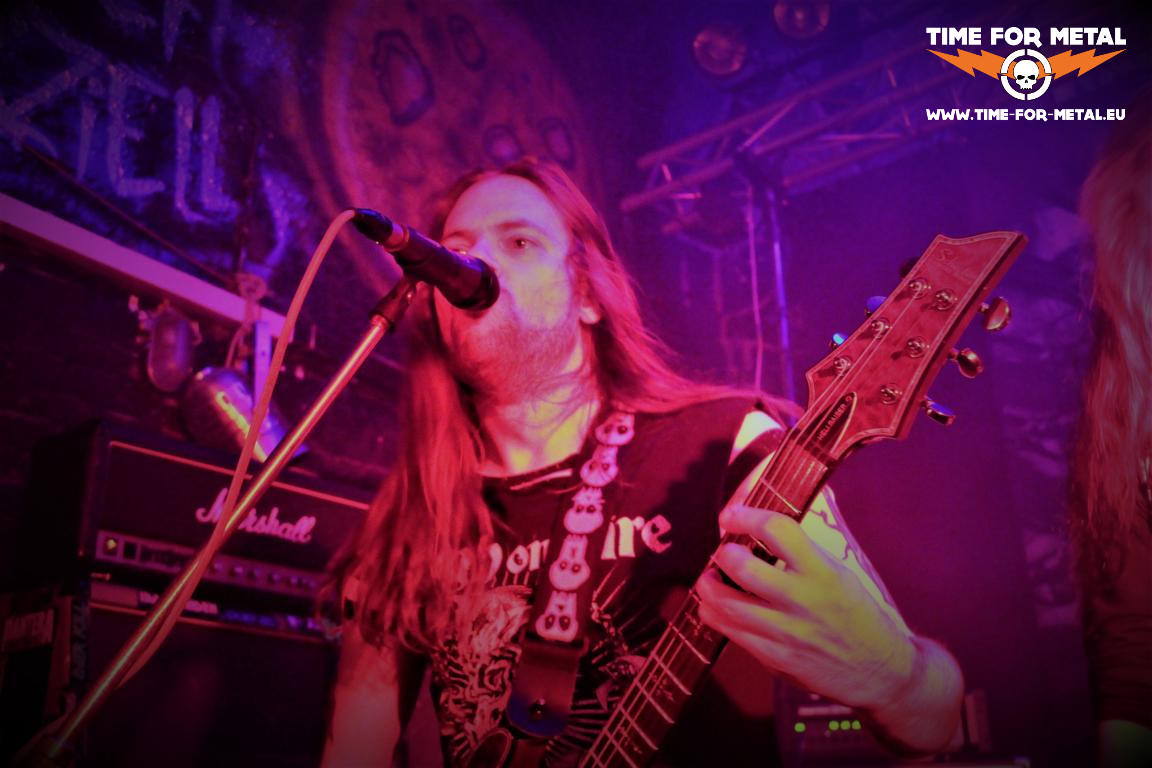 Mit ein wenig Verspätung beginnt die Veranstaltung. Deceiver aus Limburg eröffnen das bunte Treiben heute Abend und brechen als Opener sofort das Eis. Richtig voll hier. Wenn nicht ausverkauft, dann doch annähernd ausverkauft denke ich mal. Deceiver begeistern mit klassischen Heavy Metal. Sehr groovig und druckvoll kommt die Band rüber. Dabei sind wohl auch Fans im Publikum, die ausschließlich wegen Deceiver da sind. Denn einige Leute unter den Zuschauern sehe ich anschließend nicht mehr. Deceiver mussten in der Vergangenheit schon mehrere Wechsel im Lineup verkraften. Seit Ende letzten Jahres erst dabei ist Keno Hammer an den Drums, dem man dies nicht anmerkt. So sorgt er mit Bassist Marvin, auch erst seit 2016 dabei, für das notwendige Rhythmusfundament. Die Jungs haben sich von den Änderungen im Lineup nicht beeindrucken lassen. Sie spielen jedenfalls so, als wenn sie eine eingespielte Truppe wären. Klassischer Heavy Metal der Achtziger wird dargeboten, schön garniert mit ein wenig Thrash und Power Metal. Zwar sehr eingängig, jedoch mit der nötigen Härte. Im Mittelpunkt steht insbesondere Sänger Daniel Reid. Er beherrscht die Show vorzüglich und weiß eine gefällige Performance darzubieten. Simon Krah an der Leadgitarre kann mit einigen Soli begeistern. Eine richtig gute Show, die die Band hier abliefert. Ihr Gig besteht zur Hälfte aus Songs von der EP Enter The Nightmare von 2016 und aus neuen Songs. Die Band wird nach ihrem halbstündigen Gig mit viel Applaus verabschiedet.