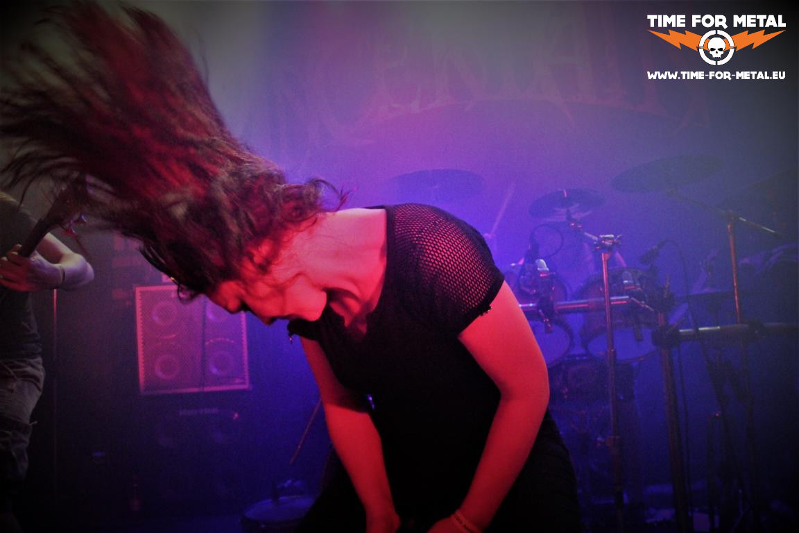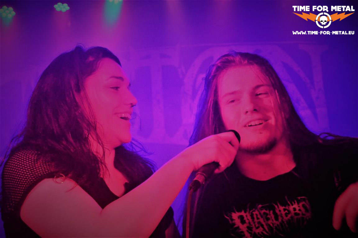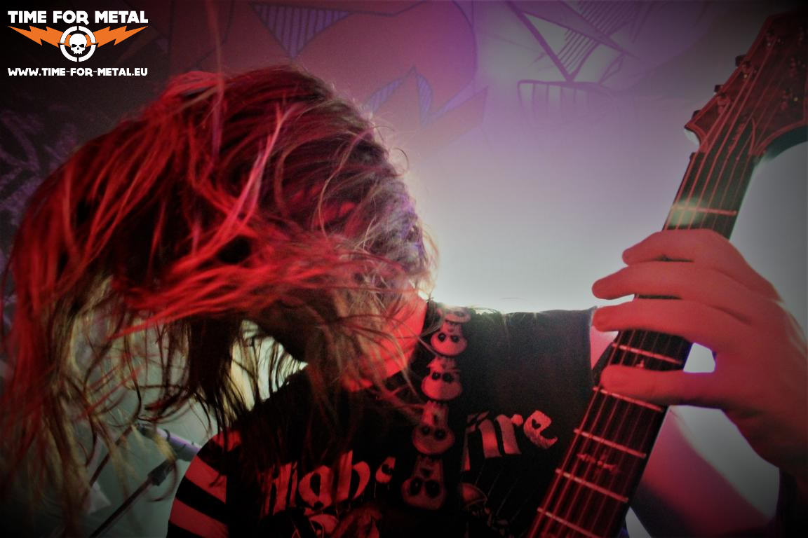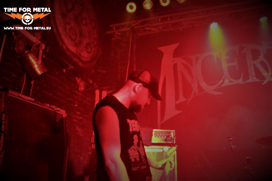 Schneller Umbau, dann kommt die Female Fronted Death-/Thrashmetal Band Incertain aus Andernach auf die Bühne. Incertain sind seit der Veröffentlichung ihres Albums Rats In Palaces richtig gut am Durchstarten. Ich selbst bin ein großer Fan der Band und habe sie bereits mehrmals gesehen. Auch heute Abend gibt es wieder eine geile Show. Zunächst sind ein paar Abstimmungsprobleme mit der Technik zu beheben. Beim zweiten Song ist aber auch das geregelt. In Punkto Härte ist das jetzt natürlich eine gewaltige Steigerung gegenüber der Vorband. Das ist auch kein Wunder, denn die Band bedient ein ganz anderes Metal Genre. Herrliches liebliches Gegrunze (Im Fachjargon: Growls) von Liane, dazu Thrash und Death Riffs von Phil, perfektes Schlagzeug Geballer von Luis und der magengrubenerbendende Bass von Janis. Das ist schon eine tolle Mischung, die die junge Band aus Andernach hier kredenzt. Leider ist mittlerweile der zweite Gitarrist Sven aus der Band ausgeschieden, weil er sich ganz auf seine Ausbildung konzentrieren will. Auch für mich ist es heute das erste Mal, dass ich Incertain als Quartett sehe. Wir bekommen die Kracher vom Album zu hören. Liane ist heute in Höchstform. Sie ist außer Rand und Band und begeistert die Fans. Der Gig endet mit Mankinds Grave. Zugabe wird gefordert. Die Fans sind aus dem Häuschen. Leider kann die Zugabe nicht gegeben werden, da bereits das komplette Programm in Verzug ist. Die Band hat sich einige neue Fans heute Abend erspielen können. Da gibt es doch tatsächlich noch einige Leute im Publikum, die die Band vorher nicht kannten. Da haben Incertain heute Abend mit ihrem Gig mächtig Eigenwerbung gemacht!