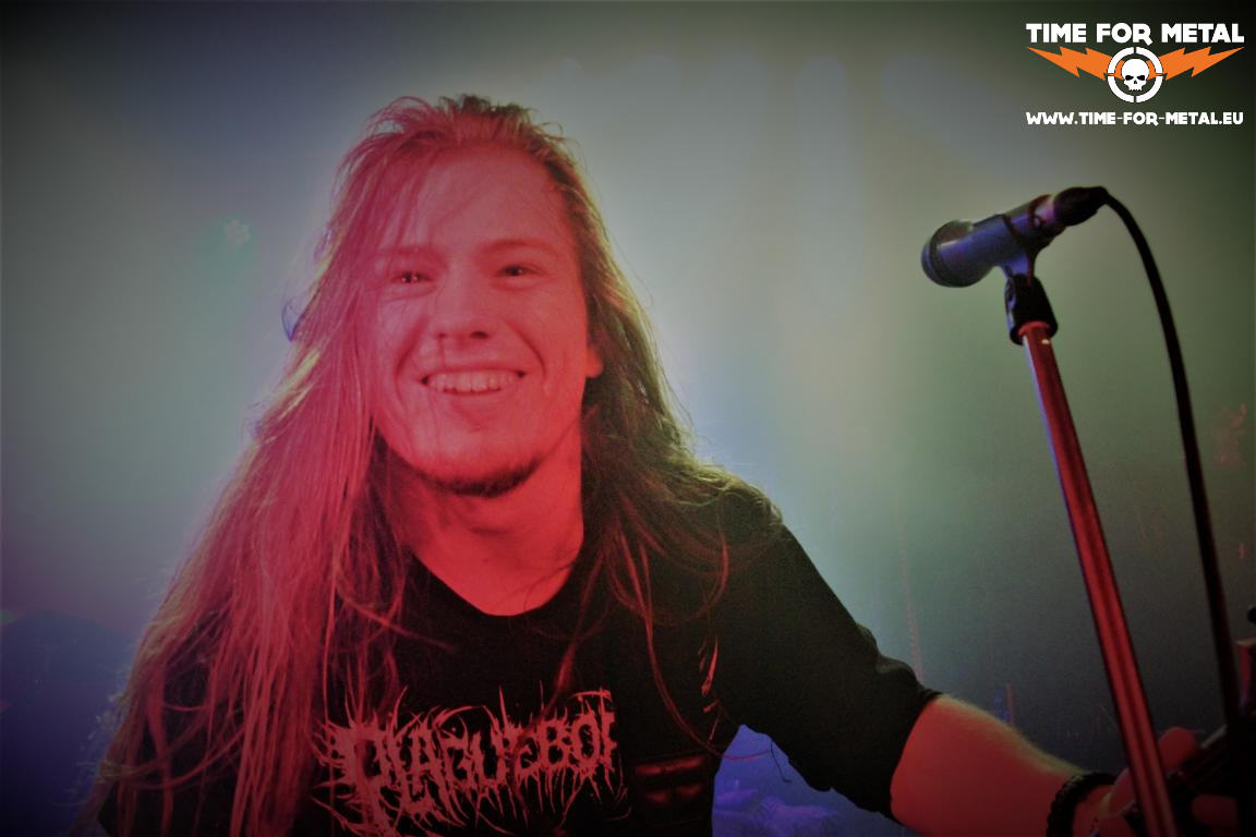 Jetzt aber mal wieder runter kommen. Der Abend ist noch nicht zu Ende. Bloodspot, die Ausrichter und Lokalmatadoren aus Limburg erwarten uns ja noch und wollen uns mit ihrem Death Metal noch malträtieren. Bloodspot machen da weiter, wo eben Grim Van Doom aufgehört haben. Haben Grim Van Doom es noch im Downtempo krachen lassen, so erwartet uns jetzt ein Death und Thrash Gewitter. Alles voll auf die Fresse. Obwohl schon recht spät, die Bude ist noch proper voll. Bloodspot will sich niemand entgehen lassen. Headbanging ist angesagt. Die Limburger, mit Heimvorteil hier, reißen alles nieder. Wobei der Heimvorteil keine Rolle spielt. Die Jungs, nach mehreren Umbesetzungen, haben sich gefunden und gehen richtig geil ab. Ich hoffe mal, dass das Lineup so bleibt und Bloodspot richtig durchstarten können. Phil von Incertain ist an der Gitarre wieder dabei. Das hatte ich ja erstmalig schon beim Loud!Fest in Andernach gesehen. Was damals Premiere war, hat sich nun eingespielt. Das steht der Band sehr gut. Natürlich ist das für Phil ein gewaltiger Kraftakt in so kurzer Zeit zwei Gigs mit zwei Bands zu spielen. Aber er ist ganz Profil und weiß mit seinem Gitarrenspiel zu beeindrucken. Wie die ganze Band in Höchstform ist auch wieder Sänger Pete, der eine großartige Performance hinlegt. Seine Growls zerlegen die Bühne, auf der er Barfuß herumstampft. Ich denke mal Barfuß, um die Bodenhaftung nicht zu verlieren. Die Setlist besteht vorwiegend aus Songs der letzten beiden Alben. Bloodspot zerlegen hier mit ihrem Auftritt nun auch wirklich alles. Dem, was die hervorragenden drei Bands hier begonnen haben, setzen sie jetzt noch die Krone auf. Weit nach Mitternacht ist hier erst alles zu Ende.