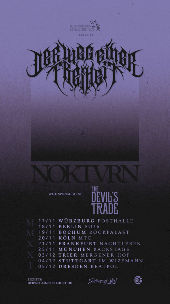 Der Weg Einer Freiheit haben außerdem eine Deutschlandtournee im November und Dezember dieses Jahres mit The Devil’s Trade angekündigt: