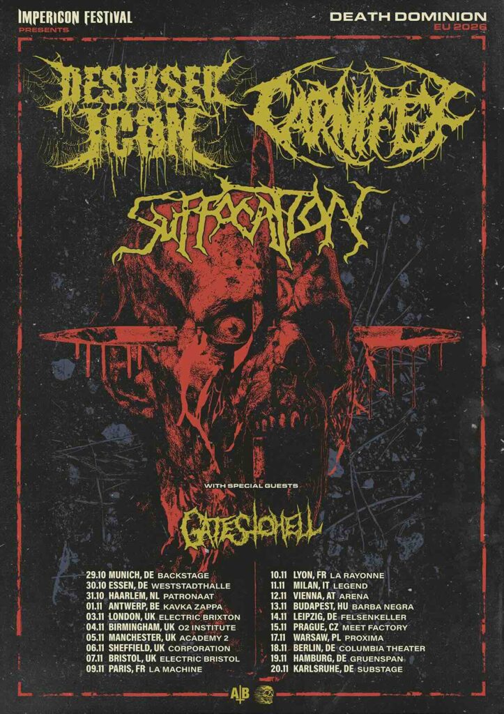 Die kanadischen Deathcore-Pioniere Despised Icon und die New Yorker Death-Metal-Legenden Suffocation tun sich diesen Herbst für eine gigantische Co-Headliner-Tour zusammen mit den Deathcore-Giganten Carnifex. Die 20 Konzerte umfassende Death Dominion Tour, präsentiert vom Impericon Festival, startet am 29. Oktober in München und endet am 20. November in Karlsruhe mit Gates To Hell als Special Guests.
