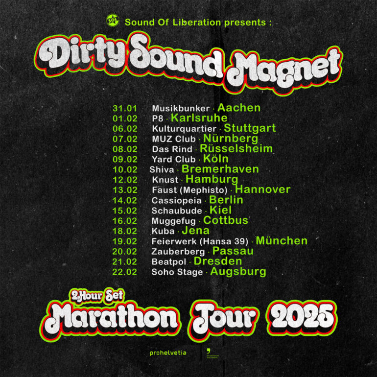 Tickets können hier bestellt werden: https://event.dirtysoundmagnet.com/germany-tour-feb-2024/