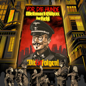 Napalm Death lastiger Grindtanz-Anfang beim nachfolgenden Song Der Ertraeger und dann holt man eine ziemlich fette Melodie heraus. Aber Hallo, das passt wie die Faust aufs Auge. Der Song fetzt und ist absolut derbe. Krass. Diese Verbindung aus melodischem Gitarrenspiel und grindigem Drumspiel kommt sehr geil.
