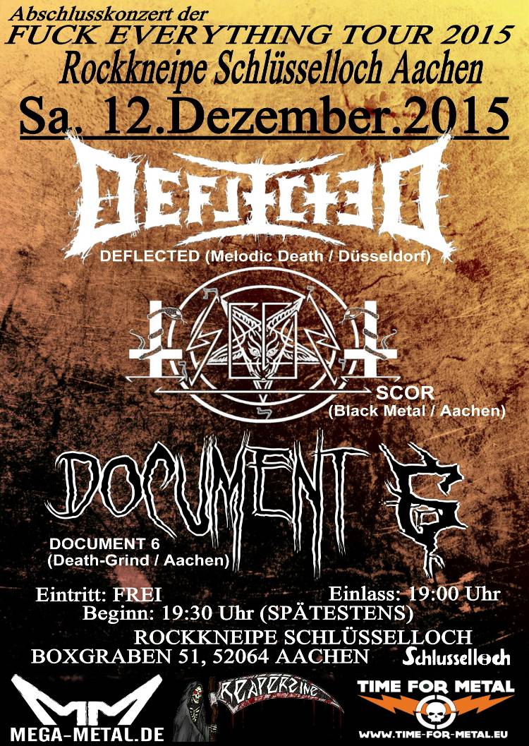 Die Death Grinder aus Aachen Document 6 werden am 12.12.2015 zusammen mit Deflected und Scor ihre Heimat Aachen die Rockkneipe Schlüsselloch zum wackeln bringen. Der Eintritt ist für alle Besucher kostenlos! Der Einlass beginnt um 19 Uhr eine halbe Stunde später könnt ihr bereits die erste Band feiern!