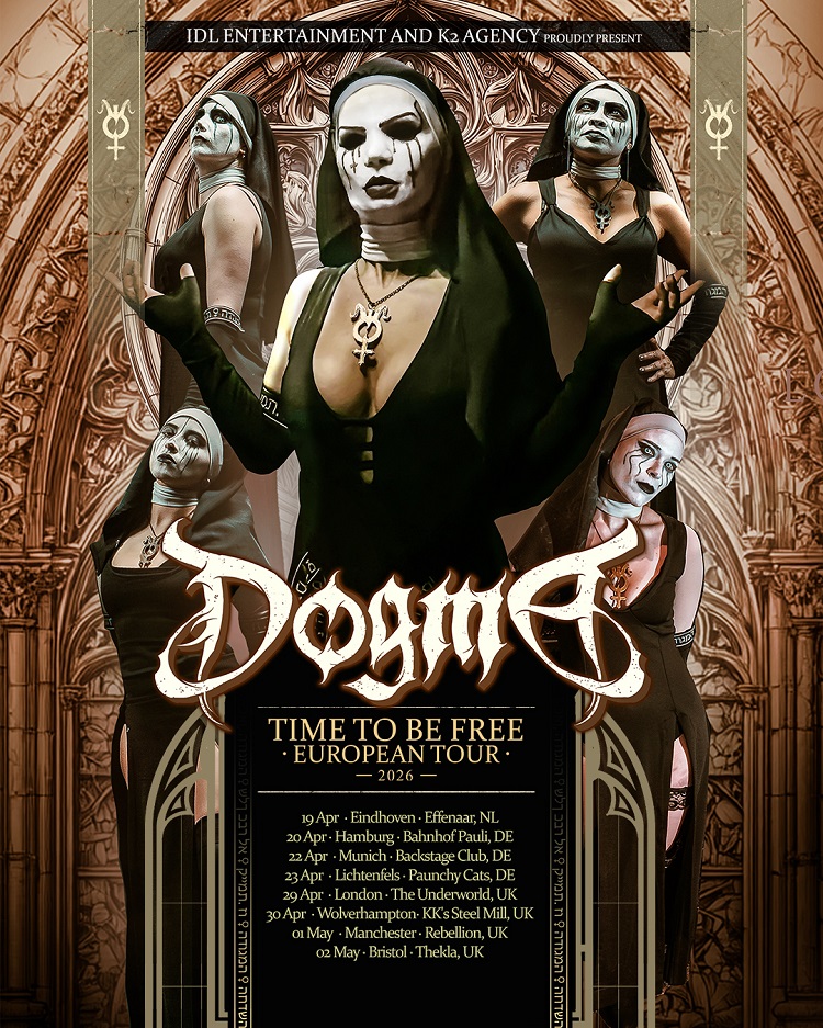 Nach einem Sommer voller ausverkaufter Clubshows und beeindruckender Festivalauftritte haben die provokanten Nonnen von Dogma ihre Time To Be Free Europatournee für 2026 angekündigt. Das Hardrock Quintett wird außerdem die deutsche Metalband Lord Of The Lost auf ihrer Europatournee 2026 supporten.