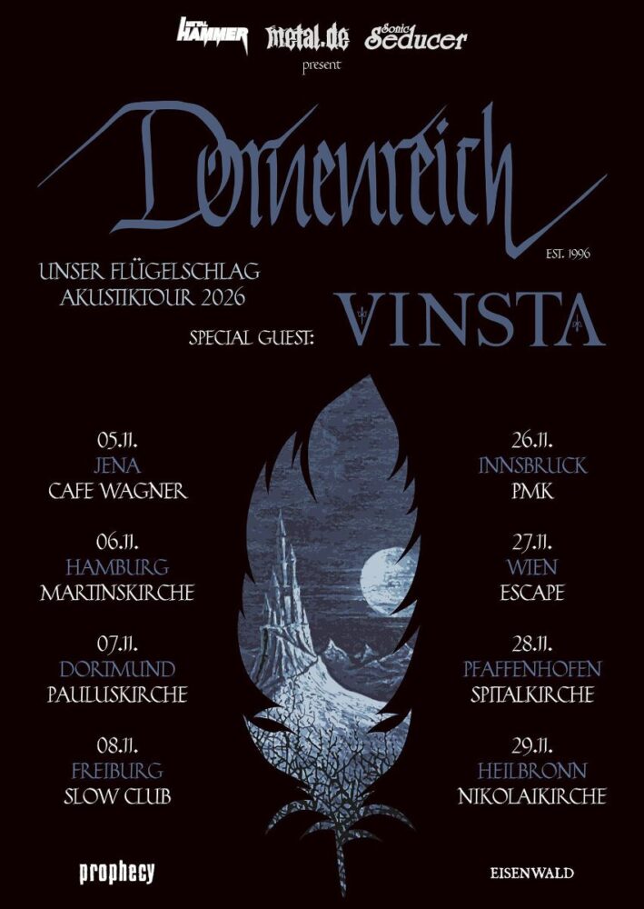 Dornenreich kündigen eine Reihe von Akustik-Konzerten unter dem Titel Unser Flügelschlag in Österreich und Deutschland für November 2026 an.