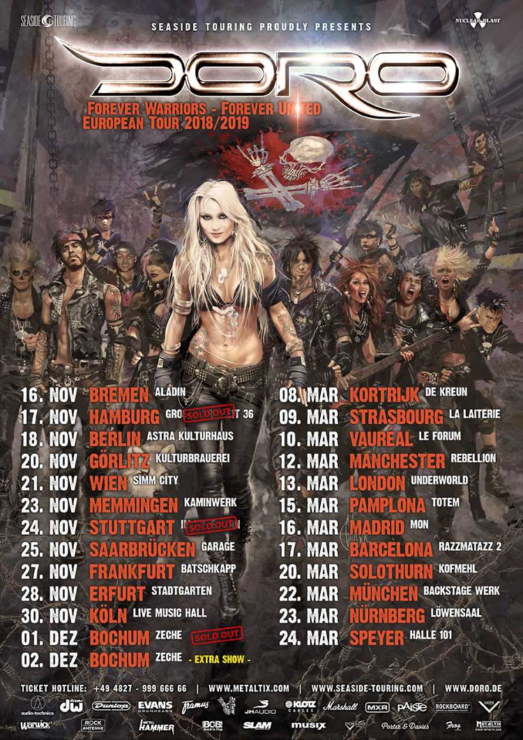 DORO meldet erste ausverkaufte Shows für den ersten Abschnitt der Tournee zur Feier ihres 35-jährigen Bühnenjubiläums. Die legendäre Sängerin kommt mit ihrem aktuellen Super-Doppelalbum „Forever Warriors, Forever United“ im Gepäck, welches auf den 1. Platz der deutschen Album-Charts stürmte.