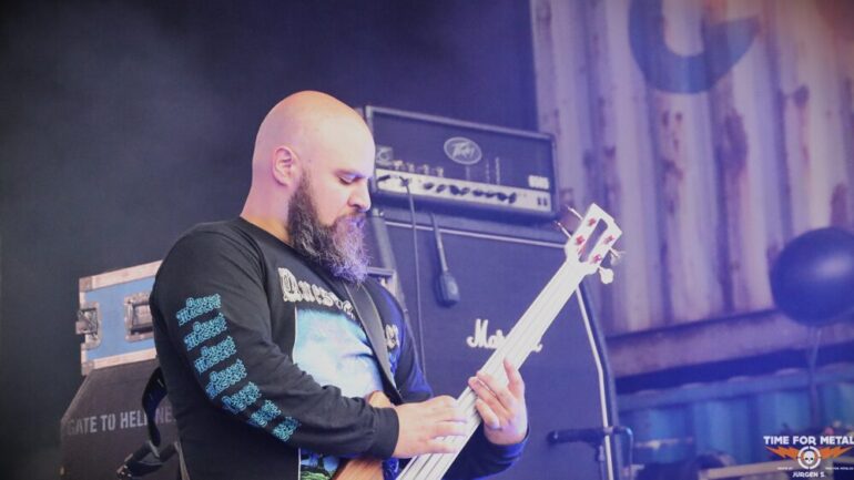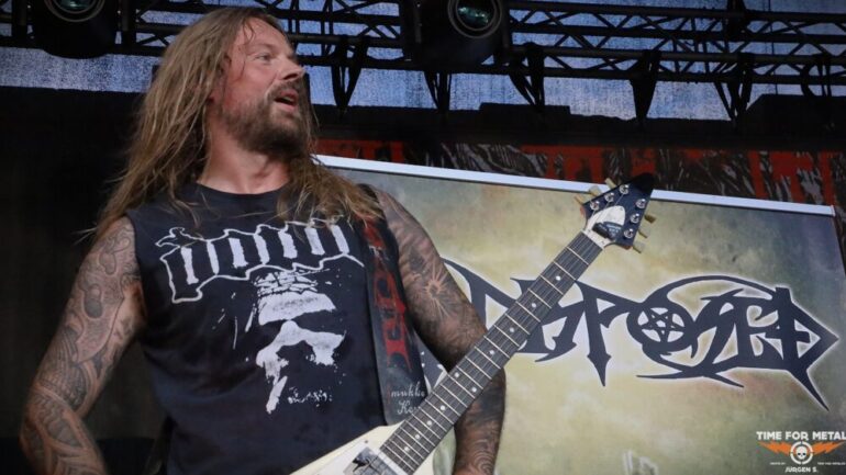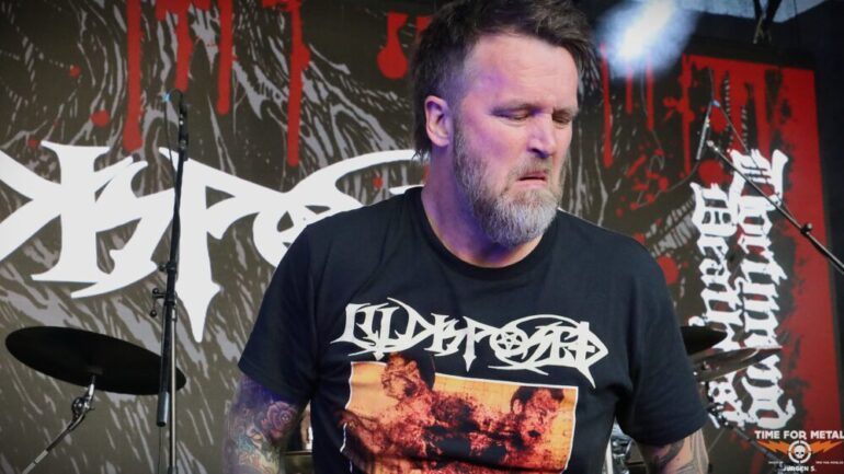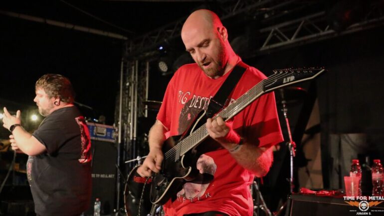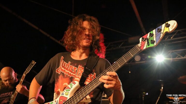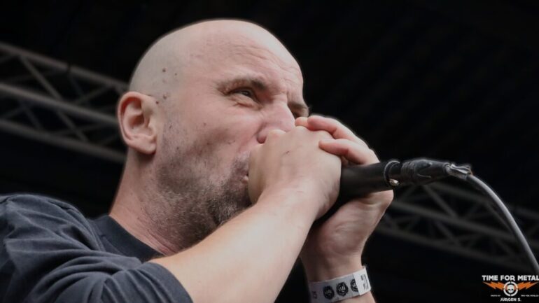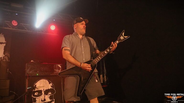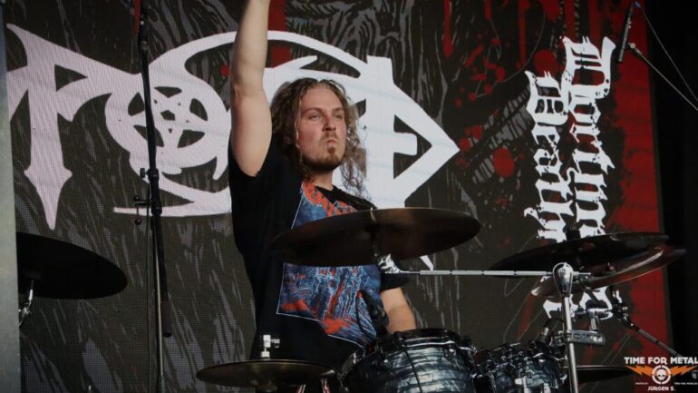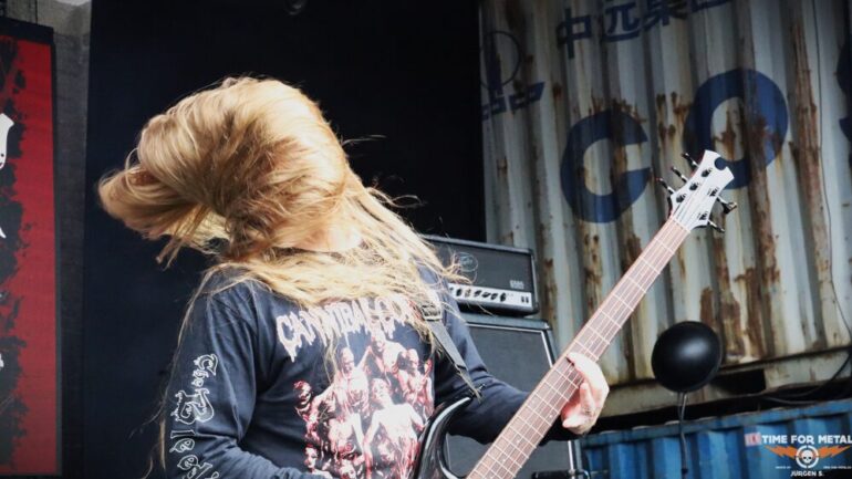 Auf der Outdoor-Stage sind Deserted Fear aus Thüringen, genauer gesagt aus Eisenberg, zu erleben. Das Quartett – eigentlich in der offiziellen Besetzung ein Trio – spielt klassischen Death Metal, der deutlich von Bands wie Dismember und Asphyx beeinflusst ist. Die Jungs haben sichtlich Spaß auf der Bühne und tragen stets ein Lächeln im Gesicht. Der Sound ist richtig gut, und sie schaffen es, das Publikum aktiv einzubeziehen. Im Frühjahr haben sie ihr bisher sechstes Album veröffentlicht, das ich mir gerne auf Vinyl mitgenommen hätte. Doch bei dem teilweise heftigen Regen traue ich mich nicht, eine Platte mitzunehmen, um sie nicht durchnässt zu Hause zu haben.