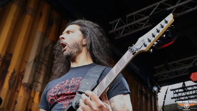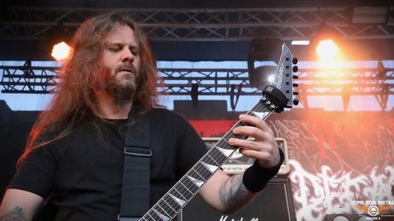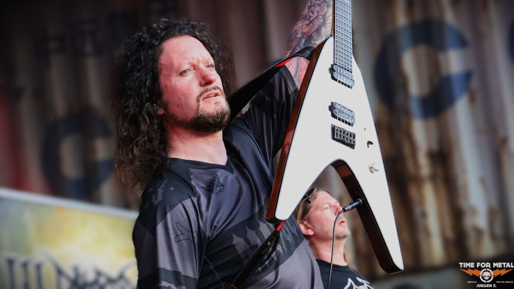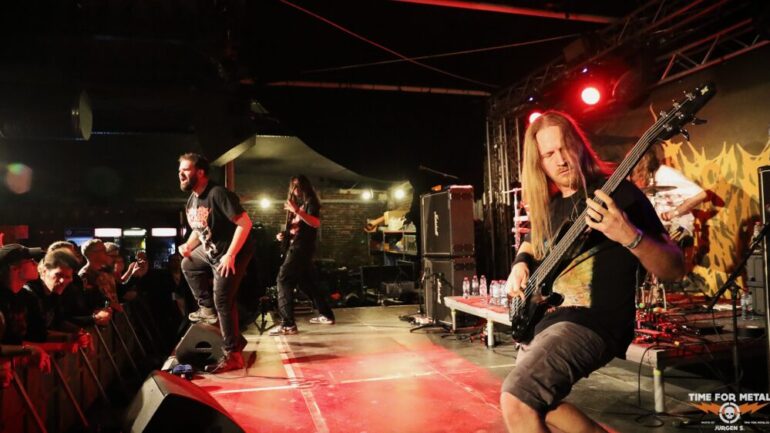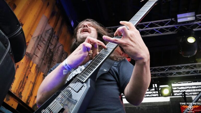 Draußen wartet mit Decapitated bereits der heutige Headliner. Decapitated sind vom Namen her natürlich ein Hammer. Die Technical Death/Groove Metaller aus Polen waren 2017/2018 in aller Munde durch einen handfesten Skandal in den USA, der ihnen einen Gefängnisaufenthalt und Ausreisestopp einbrachte. Ich habe Decapitated 2019 noch mit ihrem damaligen Frontmann Rafał Piotrowski, der durch besonders lange Rastalocken auffiel, gesehen. Damals enttäuschten sie trotz aller Vorschusslorbeeren. Wacław „Vogg“ Kiełtyka an der Gitarre ist mittlerweile das einzig verbliebene Gründungsmitglied, denn da wurde heftig gewechselt. Für mich heute live in dieser Besetzung um Längen besser als damals und auch sehr überzeugend.
