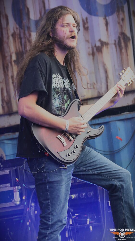 Drinnen herrscht nun die Energie von Cognitive, einer Band aus New Jersey, USA, die seit 2011 im Bereich Technical Death Metal und Deathcore unterwegs ist. Ich persönlich schätze Death Metal mit einem starken technischen Anteil sehr, und daher freue ich mich immer, wenn ich Bands wie Cognitive live erleben darf. Bereits 2018 hatte ich die Gelegenheit, sie beim Deathfeast zu sehen. Besonders beeindruckt hat mich damals Ian Bainbridge an seinem grünen Bass, der mich stark an Todd „Sexy T“ Strange, den Bassisten von Crowbar, erinnerte. Leider ist Ian nicht mehr dabei und die Band hat eine Runderneuerung durchlaufen, doch die Energie und das Können sind nach wie vor ungebrochen.