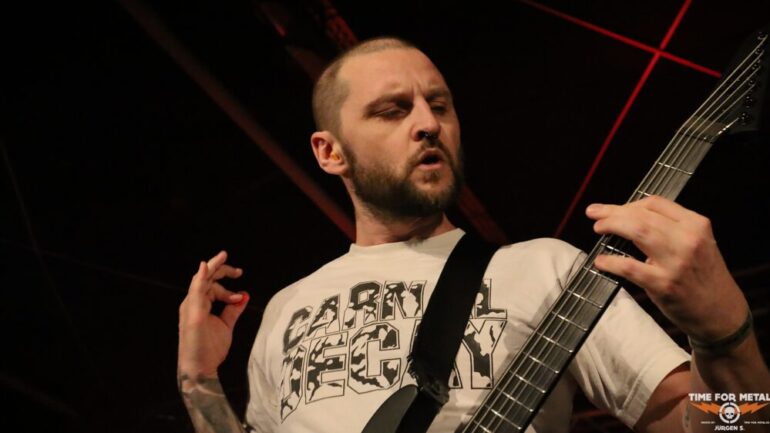 Ich hatte die Jungs von Plagueborne bereits gestern Abend getroffen. Nun stehen sie in der gut gefüllten Halle auf der Bühne und liefern ein technisches Death-Metal-Feuerwerk ab. Bei der Band aus Andernach sind ja auch die Ex-Incertain-Mitglieder Janis (Bass) und Luis (Schlagzeug) dabei. Gestern hörte ich von Phil, dem ehemaligen Gitarristen von Incertain, dass Janis heute nicht dabei ist, denn er wird in ein paar Tagen Papa. Dafür schwingt Phil heute die Axt – „klar spiele ich den Bass, ich kann ja sonst nichts“, sagt er mir noch 😉 . Da passt das Gitarrenmonster perfekt auf das Bassmonster. Phil, wie man ihn kennt, mit wehenden Haaren, ist ständig in Bewegung. Luis knüppelt im Hintergrund im irren Tempo die Kapelle durchs Set, während seine Kollegen nicht lange zögern.