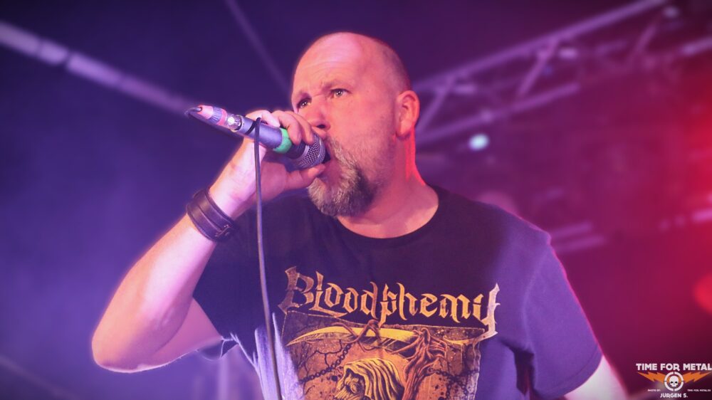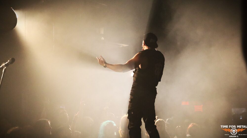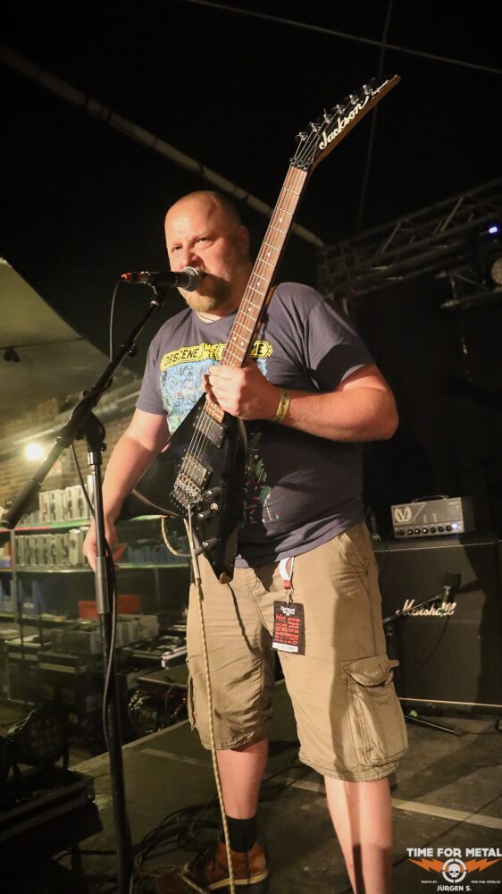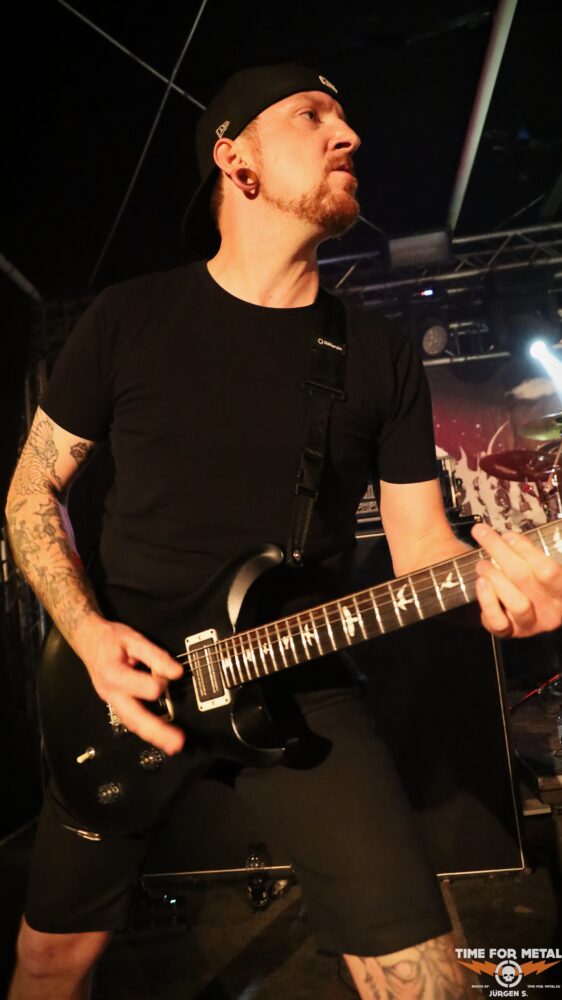 Einen Gig von Plagueborne sollte man unbedingt erlebt haben. Frontmann Stefan Höfer schreit sich das Stimmband aus dem Hals, denn er muss mit seinen Jungs ja schließlich mithalten. Plagueborne spielen technisch versierten Modern Death Metal mit mächtigen Grooveparts und schmetternden Blastbeats. Darauf treffen brachiale Riffs auf melodisch/atmosphärische Passagen, untermalt von tiefen Growls. Was für ein Auftakt für den zweiten Festivaltag hier. Bereits Plagueborne lassen alles in Asche sinken. Ihr Album A Blueprint For Annihilation aus dem Jahr 2021 serviert Death Metal mit ausgefallenen technischen Spielereien – ein Longplayer, der Time For Metal überzeugt hat und die Band in unsere Top-Listen katapultierte.