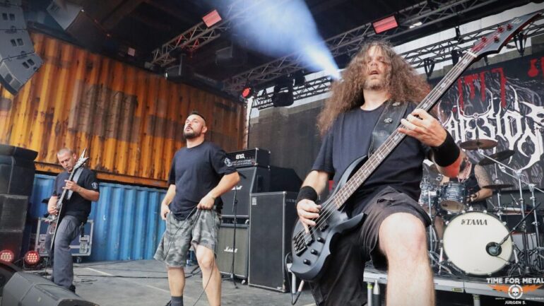 Mit Malevolent Creation steht nun auf der Außenbühne eine US-amerikanische Band, die bereits fast 40 Jahre Geschichte schreibt. Vorangetrieben wird sie vor allem von Bandgründer Phil Fasciana, der die Band am Leben hält. Heute spielen sie ein spezielles Full Eternal Album XXX Anniversary Set. Viele werden überrascht sein, dass dort oben nur ein Trio steht. Das hat jedoch einen ernsten Hintergrund: Phil Fasciana ist auf der aktuellen Tour lebensgefährlich erkrankt. Er befindet sich mittlerweile auf dem Weg der Besserung und konnte nach Hause in die USA fliegen. Seine Band zieht die Tour dennoch durch – und das wirklich nicht schlecht. Alle Achtung und beste Genesungswünsche an Phil!