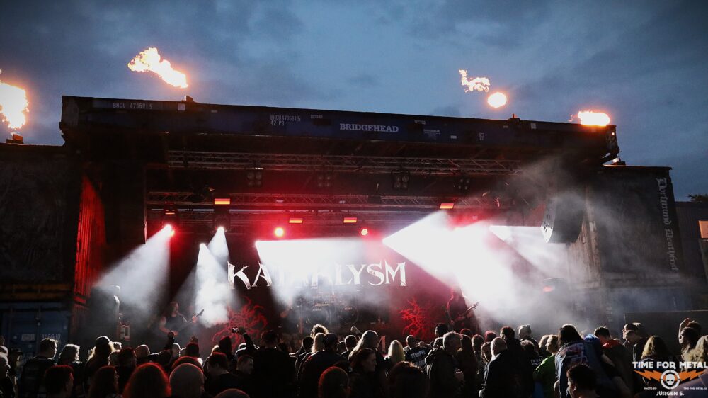 Zum krönenden Abschluss des Abends kommen Kataklysm aus Kanada. Die Death-Metal-Titanen um Frontmann Maurizio Iacono habe ich bereits mehrfach live gesehen, sind für mich immer wieder ein Highlight. Mit ihrer Mischung aus Melodic Death, Groove und harter Energie liefern sie eine grandiose Show ab. Seit den frühen Neunzigern sind sie aktiv und haben 15 Alben veröffentlicht, darunter das aktuelle Goliath (2023). Neben neueren Songs, wie dem Titelstück Goliath, spielen sie natürlich Klassiker wie In Shadows And Dust, As I Slither und The Rabbit Hole.