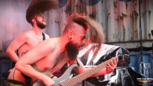 Wer bisher noch keinen Spaß hatte, wird jetzt definitiv seine Freude mit den Freunden von Stillbirth haben – ich bezweifle, dass hier noch jemand ruhig bleiben kann. Wer die Band schon einmal live gesehen hat, weiß, dass jetzt richtig Action angesagt ist. Lukas hat bereits die Plastik-Bongs auf der Bühne in Position gebracht, und die Herren in ihren bekannten Badehosen sowie mit nackten Oberkörpern sind auch schon startklar – der Punk geht hier allerdings nicht ab, sondern es ist eine wahre Brutal-Surf-Party.