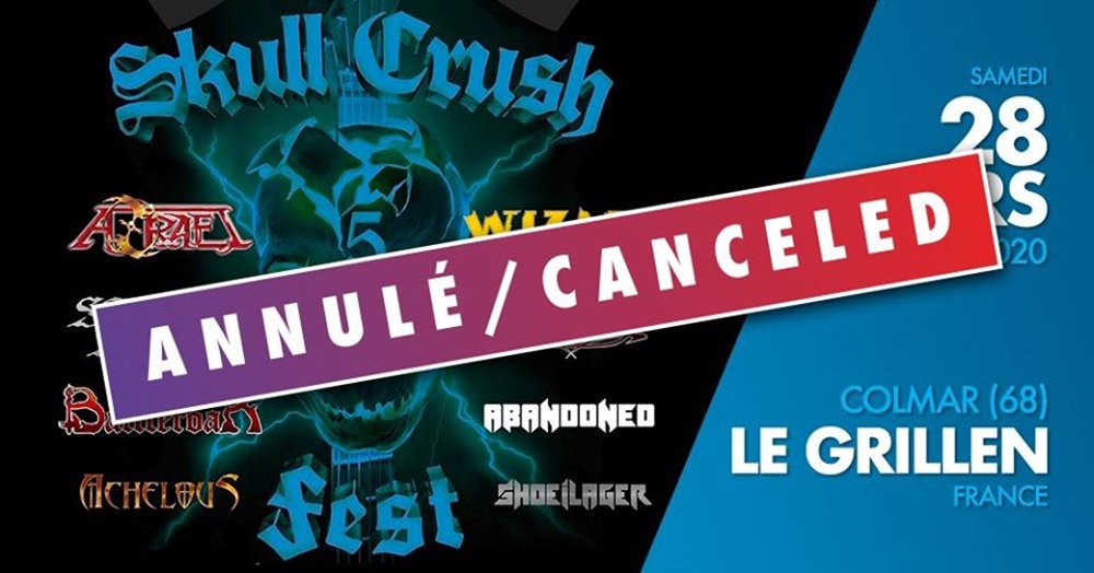 And as never before two without three: the renewal of the decree prohibiting gatherings of more than 50 people in the Haut-Rhin being obvious today, we cannot maintain the SKULL CRUSH FEST 5 • Le Grillen • Colmar, France . ❌