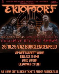 Als Opener dürfen Zord ran, ebenfalls eine Band aus dem schönen Ungarn, die wie Ektomorf ins gleiche Holz schlagen und auch mit thrashigen Einschlägen eine Dreiviertelstunde schon mal ab 20 Uhr dem Publikum einheizen. Bei ihren ersten Shows in Deutschland können sie sich schon mal bewähren und mit ihrer ehrlichen und sympathischen Art punkten. Bereits drei Alben hat die Band veröffentlicht. In ihrem Set dürfen Songs wie Sixthy–Heath, Peripheria, Sudden Hell oder Lone Death nicht fehlen. Respekt, wenn man das als Underdog so gut meistert – und den Großen damit dann die Bühne bereitet. Von Zord werden wir sicherlich noch hören – und darauf kann man sich dann freuen!