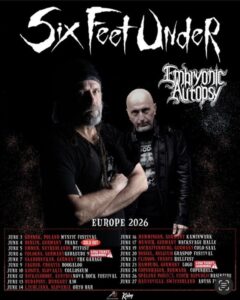 Zur Unterstützung der neuen Veröffentlichung werden Embryonic Autopsy gemeinsam mit den Death-Metal-Legenden Six Feet Under im Juni 2026 auf eine ausgedehnte Europatournee gehen und ihre vernichtende Live-Performance auf Bühnen quer durch den Kontinent bringen.