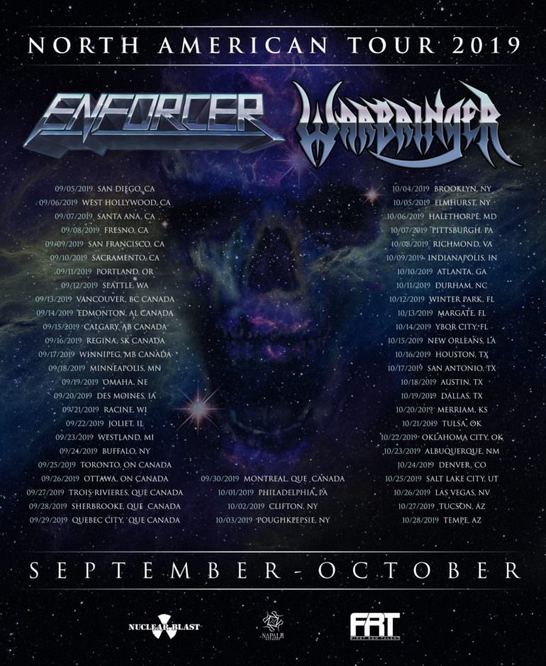 Die schwedischen Metaller Enforcer haben ihr fünftes Studioalbum, »Zenith«, am 26. April 2019 via Nuclear Blast von der Leine gelassen. Anschließend haben sie ihre neuen Songs im Rahmen einiger europäischer Club- und Fetivalshows auch live präsentiert, ehe die Truppe kürzlich mit den US-Thrashern Warbringer vier Konzerte in Mexiko gespielt hat. Doch diese waren nur der Anfang, denn heute beginnen die beiden Bands eine gemeinsame, 54 Shows umfassende Nordamerikatour in San Diego, CA (Brick By Brick). Anschließend wird es für Enforcer in Form der kürzlich angekündigten »Wintertour 2019« mit ihren Labelkollegen Municipal Waste erneut auf Reise durch die hiesigen Clubs gehen. Das Tourpaket wird von Toxic Holocaust sowie Skeletal Remains abgerundet. Diese Shows sollte man sich nicht entgehen lassen! Unten gibt es alle Termine auf einen Blick.