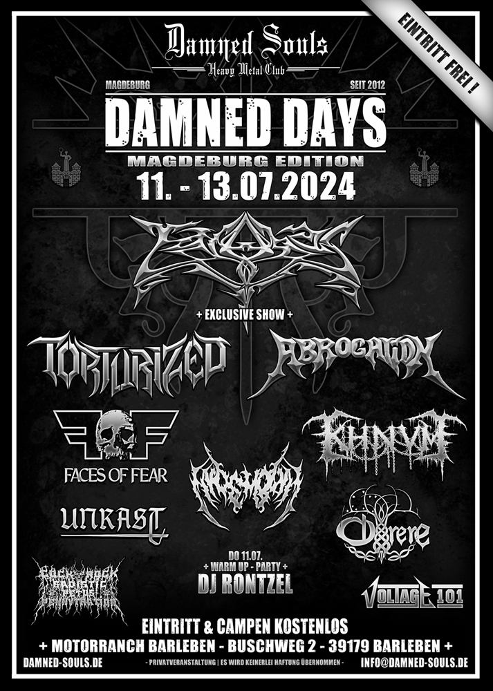 Die 13ten Damned Days, vom Damned Souls Heavy Metal Club e.V. durchgeführt, stehen in den Startlöchern. Eintritt und Camping sind wie immer kostenfrei!!!