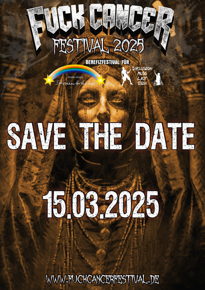 Dieses Jahr sind neben Night Laser und Eradicator noch Drill Star Autopsy, Sagenbringer, Plasmajet und From March To May mit dabei. Außerdem wird Till Burgwächter erwartet, der für Erika (eigentlich Daniel) als Ersatz einspringt. Insgesamt ist das Festival eine Gelegenheit für Menschen, sich zusammenzuschließen und etwas zu bewirken. Es soll eine positive und optimistische Botschaft senden und den Kampf gegen Krebs auf eine kreative und inspirierende Weise unterstützen sowie Gelder für die Sternenbrücke generieren. Das hat in der Vergangenheit gut geklappt. Neben einer Verköstigung vor Ort gibt es umfangreiches Merch und auch eine Tombola für den guten Zweck. Letztes Jahr waren alle Lose innerhalb kürzester Zeit vergriffen. Also kauft Karten, besucht das Festival, tut Gutes und lasst euch mit anständiger Musik belohnen. Eine weitere Möglichkeit, sich dauerhaft zu engagieren, ist gegeben, indem man Mitglied oder Fördermitglied im Fuck Cancer Festival e.V. wird.