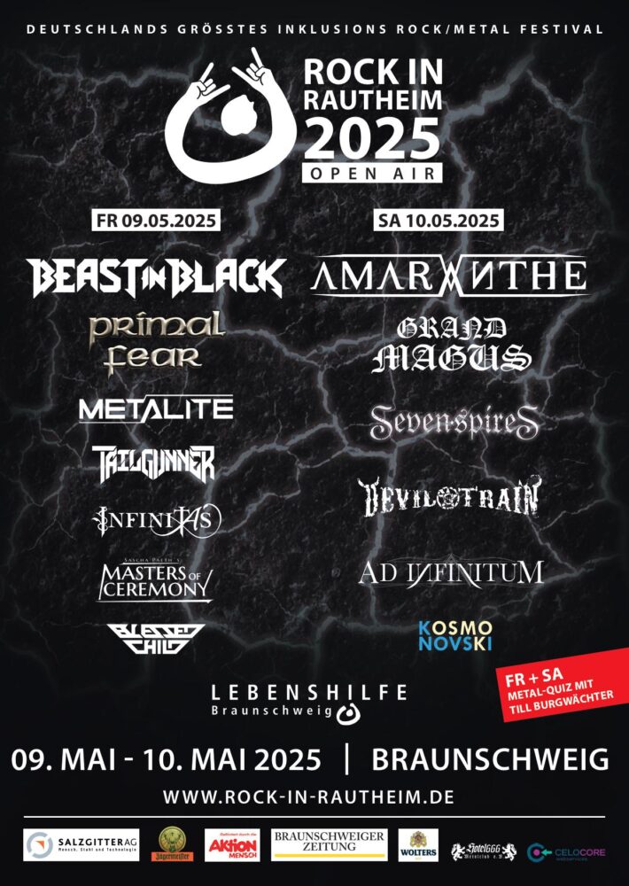 Jeder, der einmal die familiäre Atmosphäre auf dem Rock In Rautheim erlebt hat, wird zum "Wiederholungstäter". Am 09. und 10. Mai 2025 sorgen die Lebenshilfe Braunschweig mit ihrem starken Partner, der Aktion Mensch, und regionalen Unterstützern wieder für hochkarätige Unterhaltung unter dem Banner "Inklusion meets Metal".