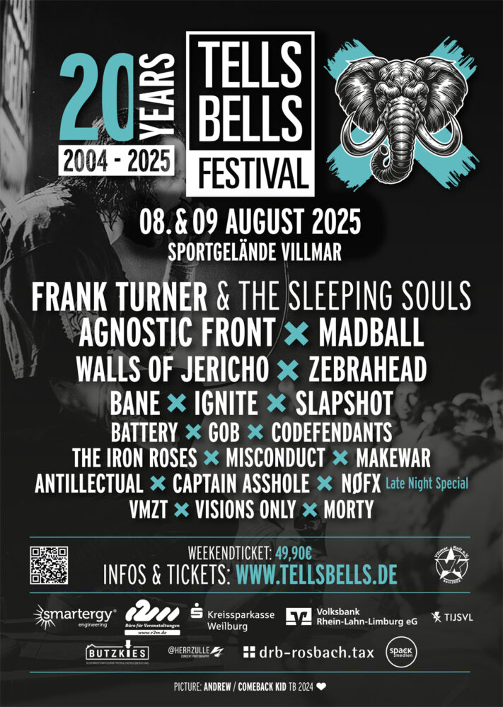 Zum Line-Up für 2025 gehören unter anderem Szeneveteranen wie Agnostic Front, Madball, Walls Of Jericho, Ignite, Frank Turner & The Sleeping Souls, Slapshot oder Spaßgaranten wie Zebrahead. Alle weiteren Infos gibt es via https://www.tellsbells.de.