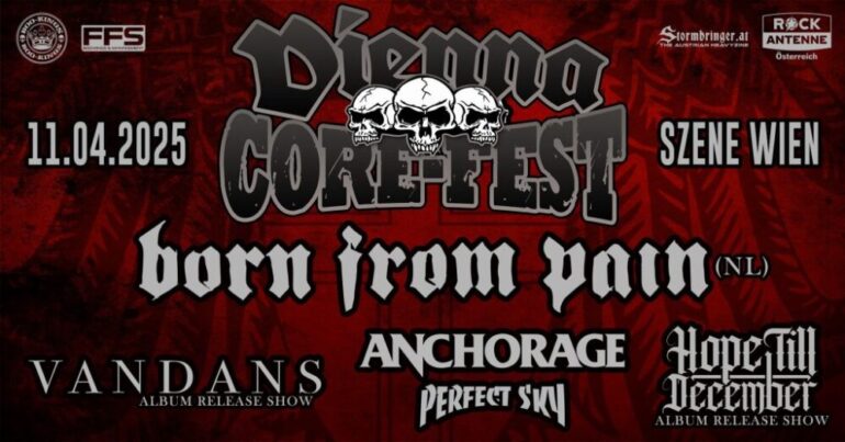 Als Headliner sorgt Born From Pain aus den Niederlanden für pure Eskalation – die Hardcore-Veteranen werden mit ihrer kompromisslosen Härte und unbändigen Leidenschaft die Bühne zum Beben bringen. Doch das ist längst nicht alles! Vandans präsentieren an diesem Abend ihr brandneues Album, während Anchorage mit ihren explosiven Live-Shows für Abrissstimmung sorgen. Auch Hope Till December feiern eine Album-Release-Show, und Perfect Sky komplettieren das energiegeladene Line-up.