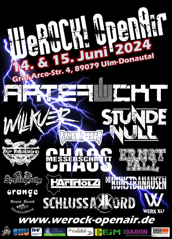 Das WeROCk! Open Air findet dieses Jahr zum 4. Mal statt und unterstützt wieder hilfsbedürftige Kinder in Ulm und der näheren Umgebung. Somit hat sich das Festival dem guten Zweck verschrieben und es stehen keine reinen gewerblichen Gründe im Vordergrund. An zwei Tagen wird im Industriegebiet Ulm-Donautal unter dem Motto ‚Deutsch Rock‘ eben Deutschrock vom Feinsten geboten. Neben Artefuckt, Wilkür und Stunde Null sind weitere Acts aus deutschen Landen dabei. Am Samstag spielt zum Frühschoppen Brass Band Illerkirchberg auf und sorgt schon am frühen Morgen für gute Laune. Wer also gute Musik hören will, etwas Gutes tun will und in Spendenlaune ist, der sollte da hinfahren. Tickets gibt es unter Tickets (werock-openair.de)
