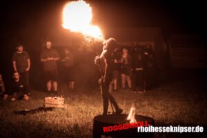 Spät am Abend begleiten uns Lifespark in eine warme Vollmondnacht, bevor gegen Mitternacht die Death-Metal-Formation Words Of Farewell aus dem Raum Münster die Bühne übernimmt. Spätestens bei Born Of Sleep ist klar: Das ist der musikalische Höhepunkt des Wochenendes. Die Band im Line-Up Alexander Otto (Gesang), Erik Gaßmann (Gitarre), Robin Dirks (Gitarre), Konstantin Vosshoff (Bass) und Tristan Wegner (Schlagzeug) überzeugt mit einer technisch wie auch körperlich starke Performance. Frontmann Alexander Otto glänzt nicht nur mit seiner Stimme, sondern auch mit einer Bühnenpräsenz, die den letzten Funken Energie aus der Crowd kitzelt.