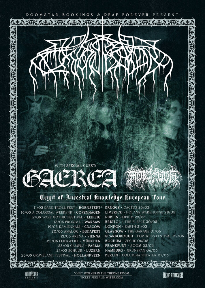 Gaerea beendeten das Jahr 2023 mit den Aufnahmen zu ihrem mit Spannung erwarteten dritten Album, das noch in diesem Jahr erscheinen soll. Doch zunächst werden sie als Special Guest bei der anstehenden Europatournee von Wolves In The Throne Room auftreten. Mit dabei sind auch die olympischen Death-Doomer Mortiferum, die diese 22 Shows eröffnen werden.