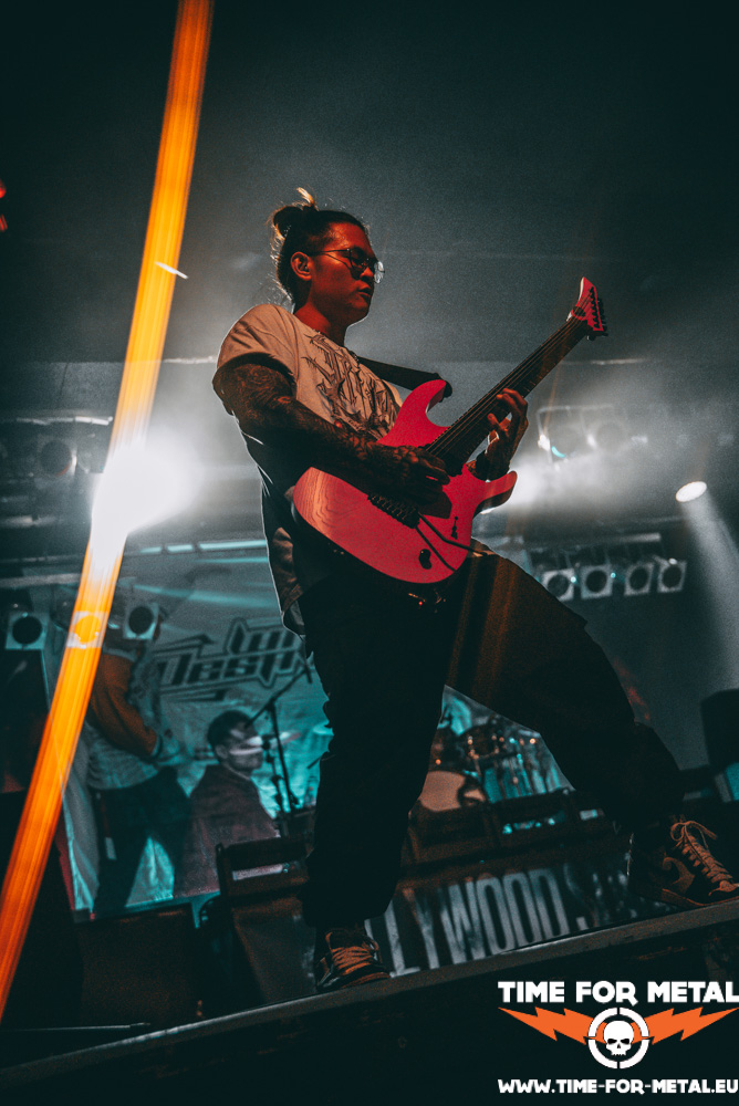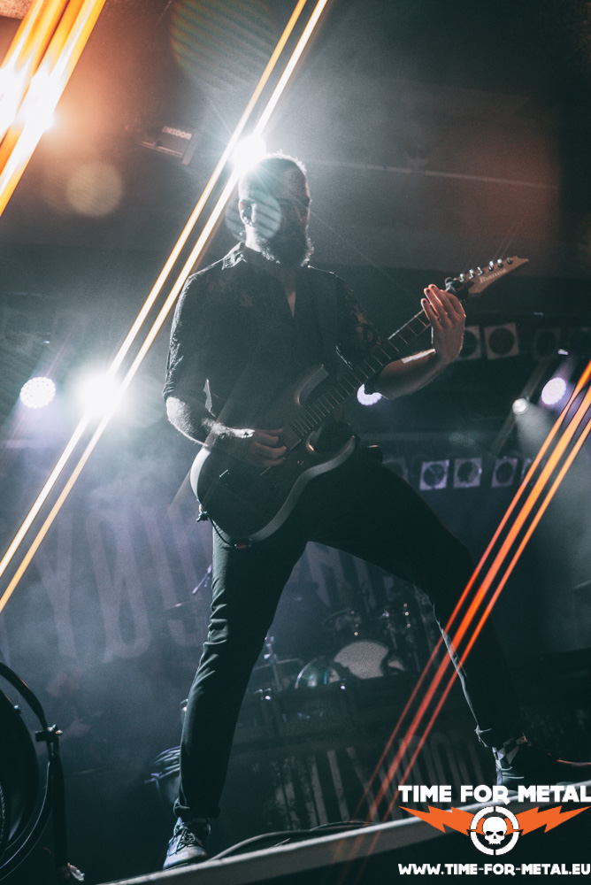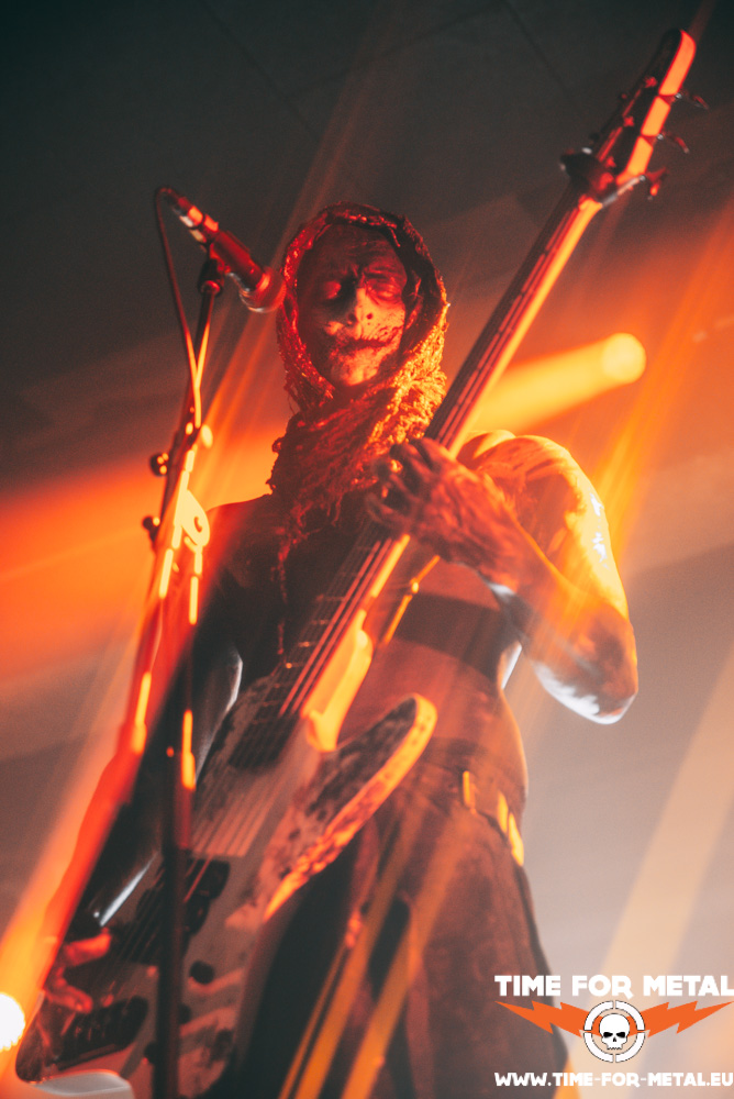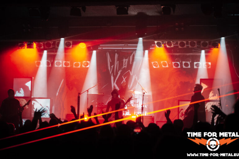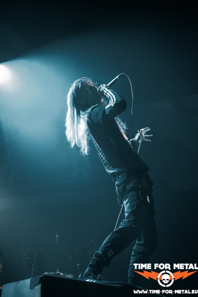 Nach circa 20 Minuten Umbauphase stürmen Within Destruction die Bühne und geben direkt Vollgas. Das Trio aus Slovenien schlägt einen anderen Ton an. Wer sich hier gepflegt im Pit zerlegen möchte, kann dies tun. Moshpittaugliche Musik gepaart mit Modern Death Metal und Slavic Rap-Sprachgesang. So ganz zuordnen kann ich das in dem Moment nicht. Den Gesichtern mancher Zuschauer zufolge geht es ihnen ähnlich wie mir. Ganz überzeugt bin ich nicht. Wenn anfangs die Interaktion mit dem Publikum nicht ganz so gut klappt wie bei Setyøursails und die Masse maximal mit Kopfnicken und Applaudieren zu bewegen ist, schafft es die Band aus Slovenien gegen Ende doch noch, die Gemüter zu erhitzen. Sänger Rok Rupnik teilt die Menge und lädt ein zur Wall Of Death. Zu guter Letzt möchte es der Frontmann Rok doch noch wissen und surft noch schnell auf der Crowd. Angeleint an sein Mikro sind die Securitys damit beschäftigt zu schauen, dass keiner stranguliert wird vom Mikrokabel des Sängers. Nach ca. 40 Minuten purer musikalischer Gewalt, Breakdowns und wer weiß noch alles, ist es Zeit für eine Umbaupause und was Flüssiges zu sich zu nehmen. Genug Zeit hat man dafür.