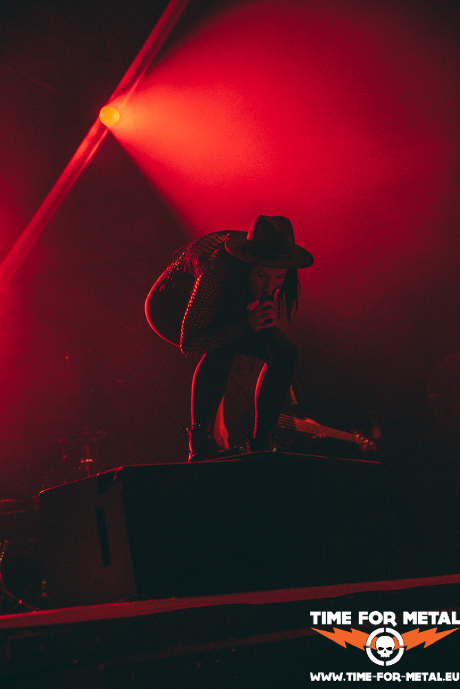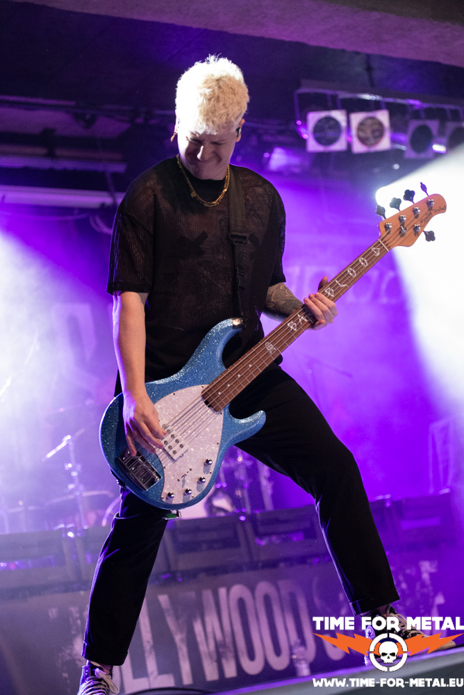 Murder! Hoffentlich kommt es dazu nicht sofort. Sushi spaltet das Publikum und treibt zur Wall Of Death an. Menschen fliegen kreuz und quer, im Metal Genre kein Problem! Man passt gegenseitig auf sich auf. Mit Songs wie Supernova oder Start A Fight sind wir kurzzeitig wieder im 2020er selbst betitelten Album Ghøstkid. Die Auswahl der Setliste ist sehr ausgewogen zwischen dem 2020er-Album Ghøstkid und dem Album Hollywood Suicide, welches Anfang des Jahres rauskam. Wer es jetzt noch nicht kapiert hat, die Hütte brennt! Mit dem Song Hollywood Suicide reißen Ghøstkid endgültig alles ab. Bassist Stanni wagt sich nochmals in die Menge und erobert die Theke der Bar. Nicht zum Biertrinken, sondern um einfach das zu tun, was zu tun ist. Bass spielen! Der Club wird durch und durch in die Mangel genommen. Zu guter Letzt noch ein Familienfoto, welches direkt am Merch-Stand erworben werden kann.