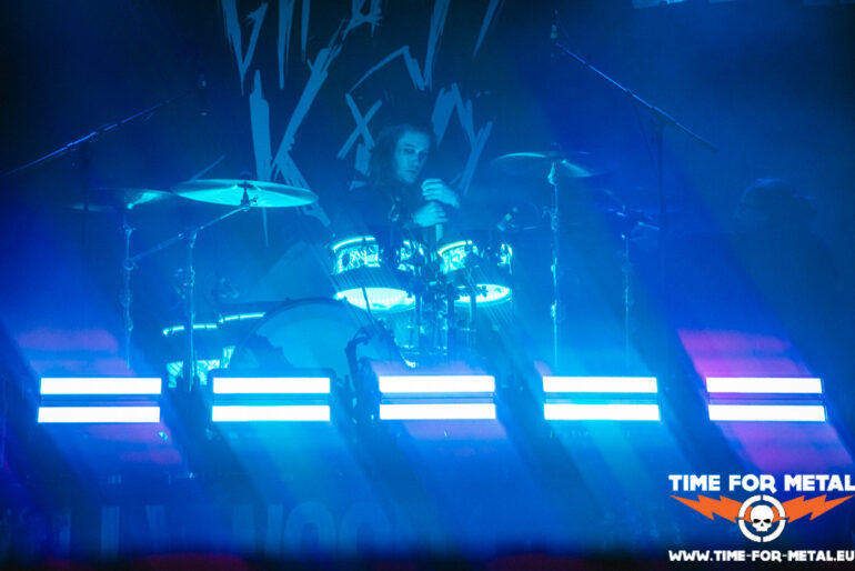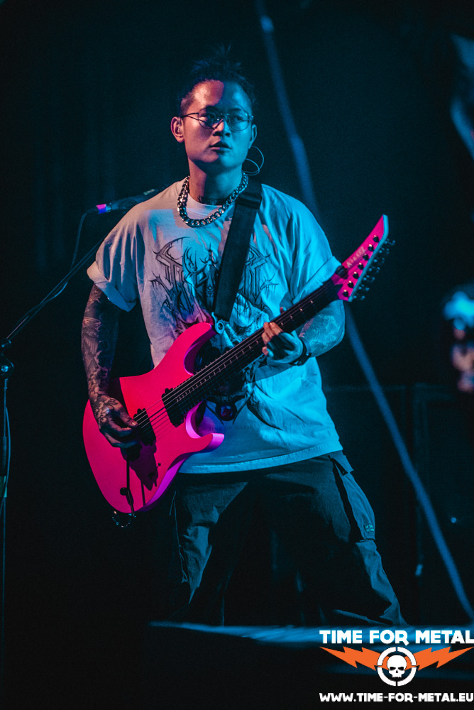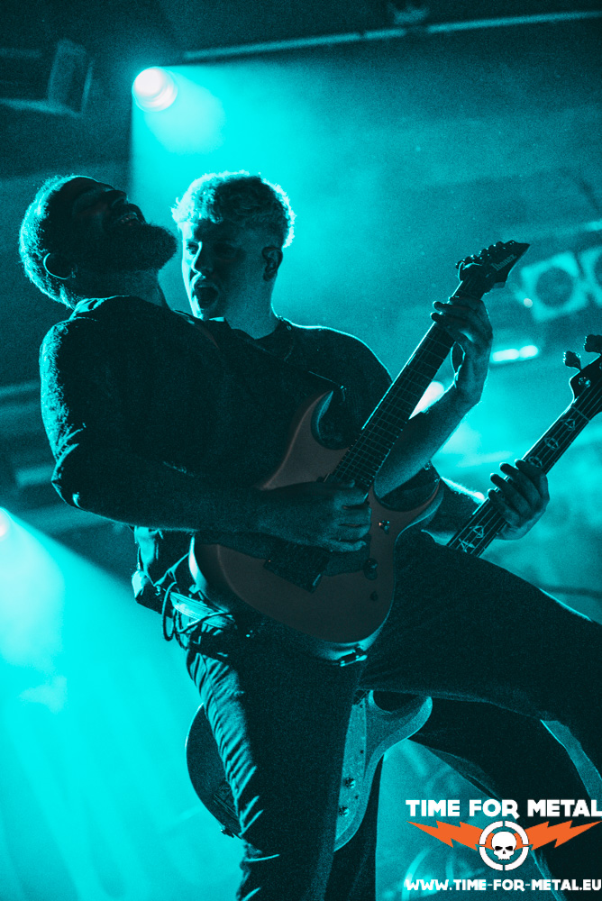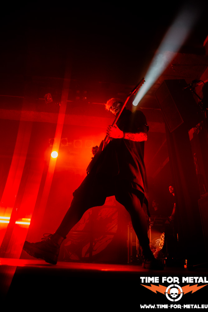Nach 30 Minuten ist die Bühne frei für den Headliner dieser Tour, Ghøstkid. Mit dem Song FSU treffen die Jungs um Sänger Sushi (Sebastian Biesler) direkt ins schwarze Herz und es geht ordentlich zur Sache. Die Message ist klar: Leg dich nicht mit den Falschen an! Das könnte sonst übel ausgehen. Zum Glück sind Ghøstkid uns wohlgesonnen und geben den Zuschauern nur musikalisch auf die Fresse. Die noch relativ junge Band, gegründet im Jahr 2020, weiß zu polarisieren und die Fangemeinde fühlt mit ihnen. Es braucht natürlich keine Sekunde, und die Stimmung im Club ist gigantisch. Bei dem Song Crown von 2020 können sich Gitarrist Jappo (Jan Marco Heinz) und Bassist Stanni (Stanislaw Czywill) nicht mehr zurückhalten und wollen es direkt wissen! Dazu erobern sie den Circlepit im Herzen der Fangemeinde. Mehr Kontakt geht fast nicht. Es ist deutlich spürbar, wie sehr Ghøstkid die Nähe zum Publikum wichtig ist.
