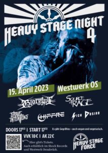„Am 15.04.2023 findet im Osnabrücker Westwerk die nächste Ausgabe der Heavy Stage Night statt. Und wie schon in den vergangenen Jahren, haben wir auch für die vierte Runde unseres kleinen Indoor-Festivals wieder ein abwechslungsreiches Billing zusammengestellt.
