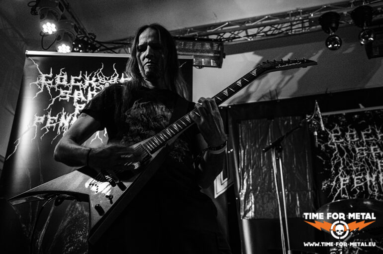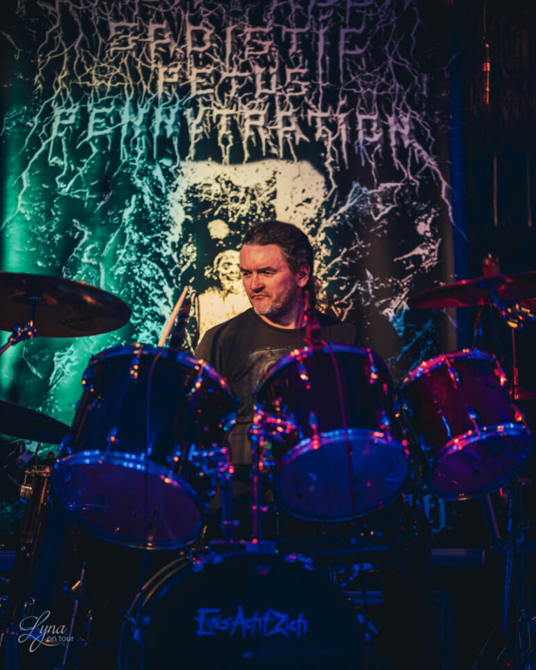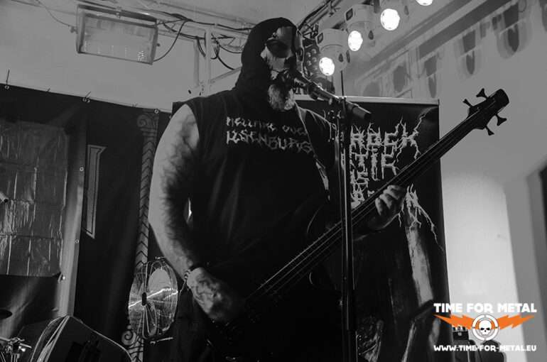 Der Name CockRock Sadistic Petus Pennytration und das dazugehörige „Asthaufen-Logo“ lassen vermuten, dass das Wolfsburger Trio nicht gerade zum Tänzchentee einlädt. Bereits beim Soundcheck kann ich mich davon überzeugen, dass die Axt von Sadistic Petus einfach nur Nerven durchtrennend klingt. Frontmann Pennytration kommt mit seiner hünenhaften Statur und seiner Maske wie ein Wrestler rüber. Songs wie Death Metal (der Name ist Programm), First Sign Of Cannibalism oder das geniale Fleshcult Apocalypse, vom Album Tales Of The Undead machen ein paar Dudes in den ersten Reihen sowie mir und meinem Kumpel echt Spaß. Der Rest der Anwesenden ist leider sehr verhalten. Eine Tatsache, die sich den gesamten Abend über nicht spürbar verbessert. Auch wenn „Karate Kids“ laut Schild am Einlass eindeutig nicht erwünscht sind, wäre ein bisschen Bewegung echt nicht verkehrt. So rutscht dem Frontmann der Wolfsburger die berechtigte Frage raus, „ob denn Metaller anwesend sind?“ „Wir haben Merch, das könnt ihr da vorne kaufen, das ist Pflicht“, schickt er nachdrücklich hinterher. Technische Probleme an den Drums? Kein Problem – Siggi macht heile! Durch Cannibal Corpse-Frontnacken George „Corpsegrinder“ Fisher habe ich gegrowlte Ansagen kennen und lieben gelernt. So zaubert mir „next song, motherfuckers – Bloodpaaaaath“ ein Lächeln auf die Lippen. Trotz der verhaltenen Publikumsreaktionen gibt es Zugaberufe für die Cockrocker. Die Damned Souls steigen aus dem Grab empor und strapazieren meine Nackenmuskulatur. Old School Death Metal ist live einfach geil. Punkt.