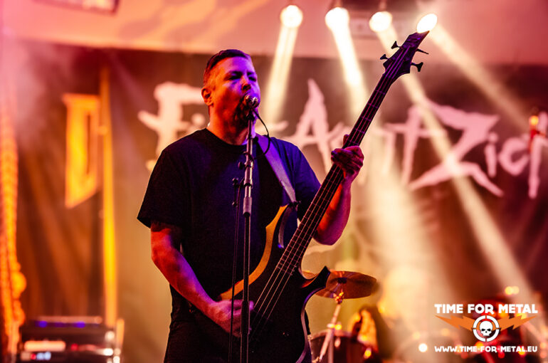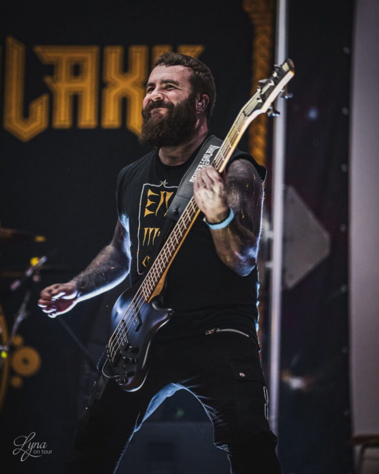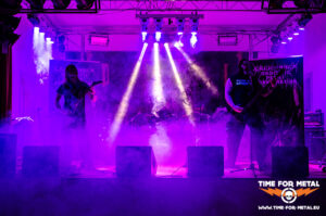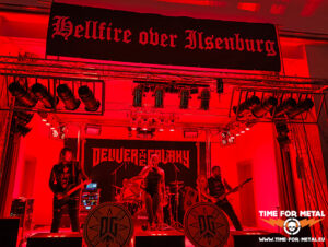 Vorfreude Part I: Die Harzer Jungs von Deliver The Galaxy haben im letzten Jahr mit Bury Your Gods ein bockstarkes Album in die Umlaufbahn geschossen. Ein Blick auf die Setlist lässt mich bereits zufrieden nicken. Alle meine Lieblingssongs stehen drauf. Die Bühnendeko wird deutlich umfangreicher. Das Konzept steht. Frontmann Matze versucht alles, um das Publikum aus der Reserve zu locken, doch es kommt nur wenig Feedback. Ich und ein paar nicht in den vorhandenen Altersdurchschnitt passende „Fangirls“ haben trotzdem unseren Spaß. „Bringt den Metal zurück in den Harz, sonst gibt’s hier bald nur noch Pullman City“, haut der Sänger mit einem Dank an die Veranstalter des Hellfire und auch der Heimburger Metalnacht, die ebenfalls vor Ort sind, raus. Bury Your Gods und Insetopia bringen die Melodien. „Habt ihr Bock auf brutaleren Scheeeeiß?“ Klar doch. Serpent’s Lament beschert mir eine dicke Gänsehaut. Ich hätte schon Bock auf einen Circle Pit, aber egal, was Matze auch versucht, das Publikum reagiert nur sparsam. Immerhin gibt es Feuerzeuge/Handylichter zur auf Deutsch gesungenen Hymne Unsterblich und einige Shouts zum abschließenden Brecher Live.Die.Repeat.