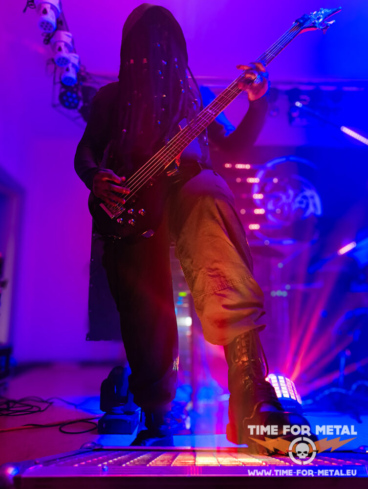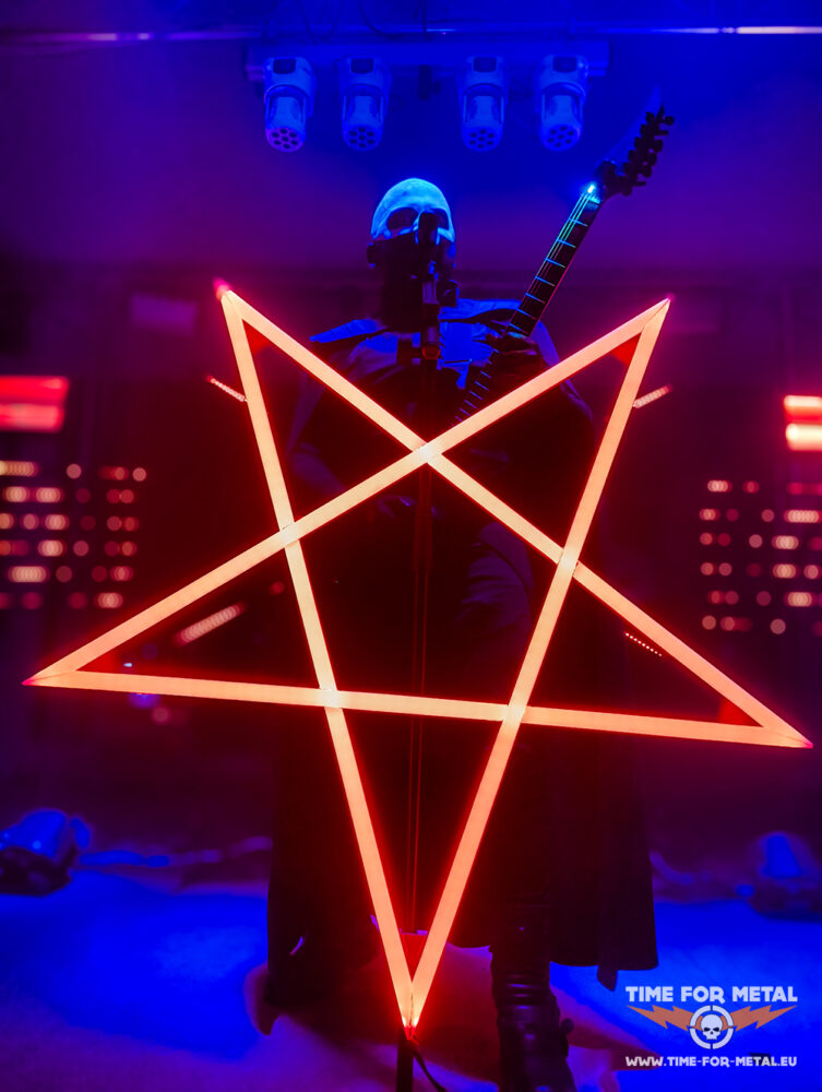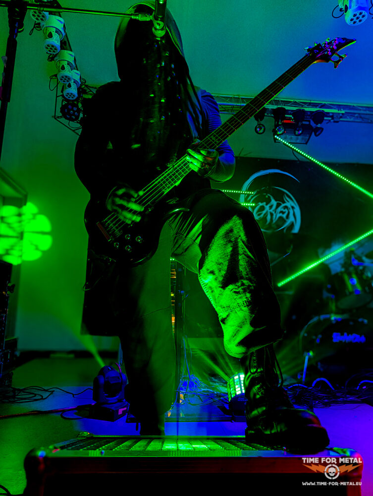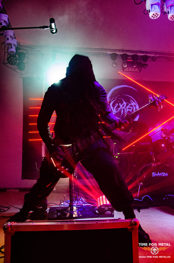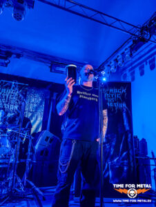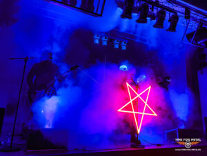 Vorfreude Part II: Bereits seit dem Tag der Ankündigung von Vorga, bin ich gespannt auf diesen Auftritt. Das großartige 2022er-Werk Striving Toward Oblivion wurde von der Band mit dem Hang zum Übernatürlichen zwei Jahre später auf Beyond The Palest Star sogar noch übertroffen. Zunächst mal werden hier unzählige Nebelmaschinen, LED-Wände und Steckdosenleisten auf die Bühne gebracht. Ich erwarte eine spektakuläre Show. Vorga sind einfach nicht diese random Black-Metal-Band mit Standard-Corpsepaint und Kunstblut, so viel ist klar. Kombiniert man Musik und Lichtshow, könnte man sogar von Black Metal meets Pink Floyd sprechen. Der aus Bulgarien stammende Frontmann, der in Karlsruhe ansässigen Band, hat wirklich markerschütternde Schreie im Repertoire und ergänzt sich hervorragend mit „Bass-Predator“ Zora. Nach wenigen Sekunden bin ich in Trance. Die unerbittlichen Riffs, die großartige Neon-Lichtshow und die anspruchsvollen Songs aus der Feder von Atlas haben etwas Spirituelles an sich. Drummer Hymir ist hinter all dem Neon gar nicht zu sehen und liefert dennoch Next-Level-Shit ab. Sowohl visuell als auch soundtechnisch das Beeindruckendste, was ich seit Langem gesehen habe. Meine Gänsehaut geht bei Songs wie Starless Sky oder Voideath runter bis zum Schienbein. Danke Vorga, dass ihr mich auf euren Planeten geholt habt. Ein kleiner Plausch nach dem Konzert eröffnet mir nicht nur die Tatsache, dass es sich bei Vorga (das geht in der Szene auch deutlich schlimmer) um sympathische Dudes handelt, nein, ich bekomme von Drummer Hymir auch noch einen signierten Drumstick geschenkt. Überwältigender Abschluss eines gelungenen Konzertabends.