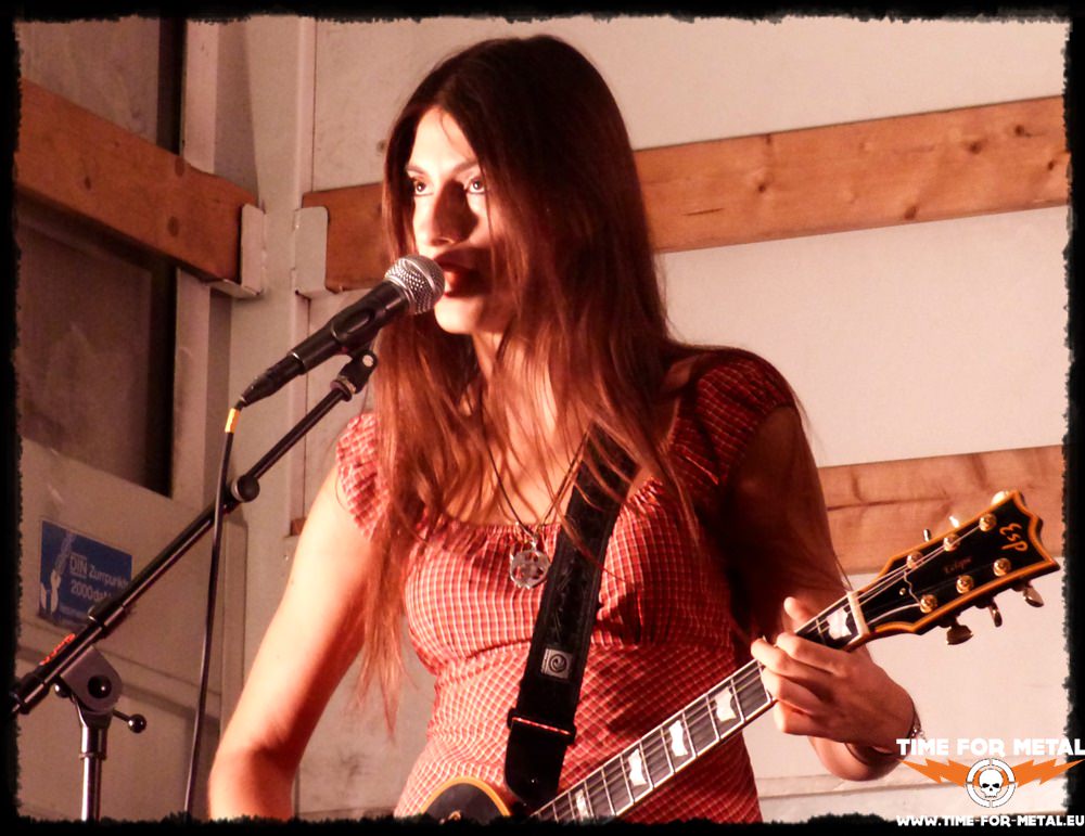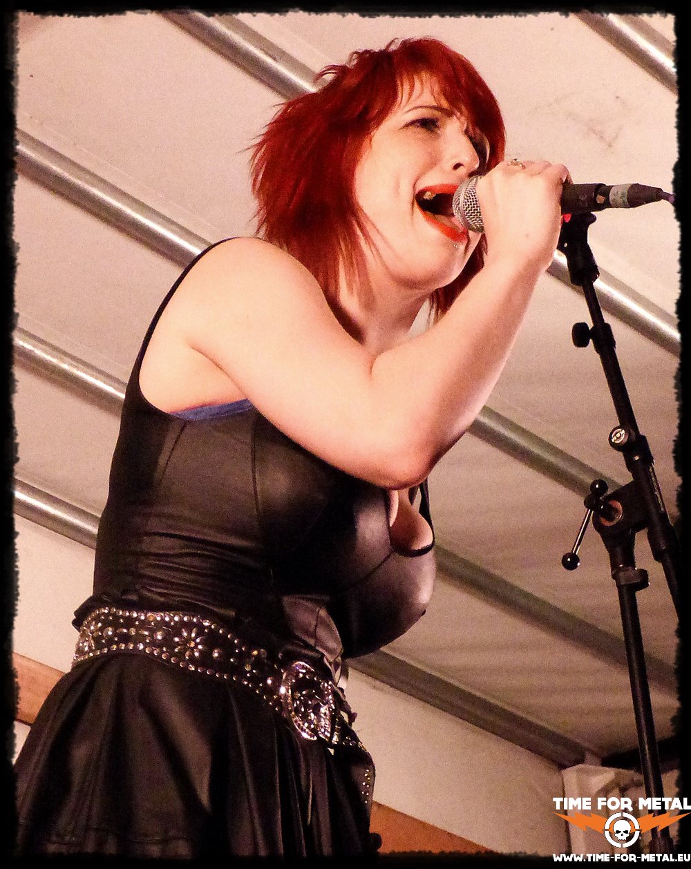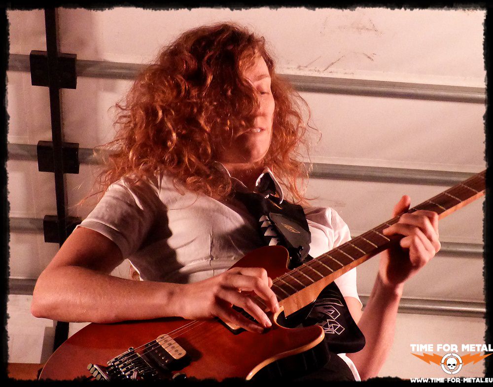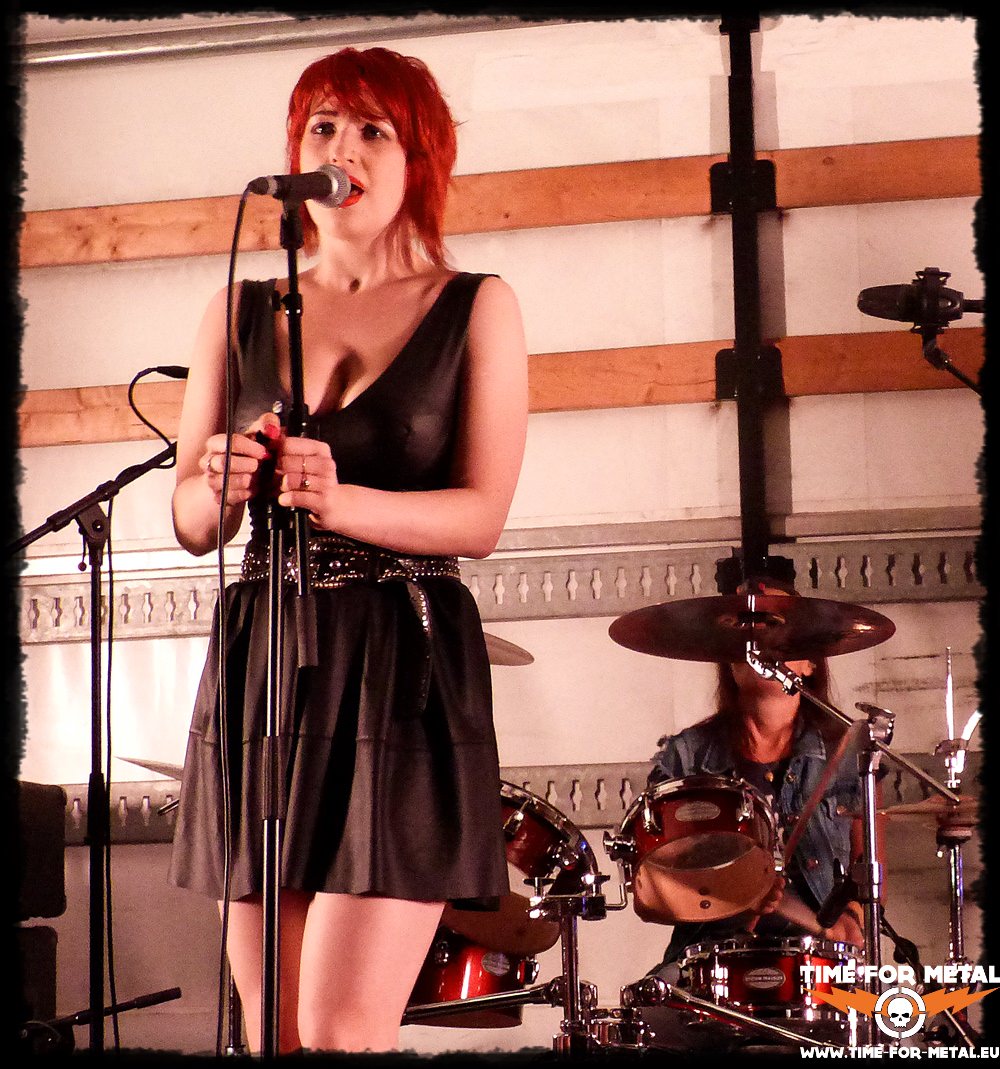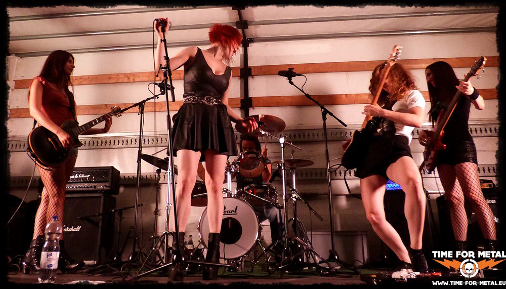 Um 20:30 Uhr soll es eigentlich laut Flyer losgehen, doch die Mädels der Band haben offenbar die Ruhe weg schließlich soll es erst gegen 21Uhr richtig losgehen. Sie gehen zum Umziehen dann in den Ochsen, der ein Stück die Straße runter liegt, um dann gegen 21:10 Uhr die Ladefläche des LKW zu betreten. Der Rathausplatz ist mittlerweile rappelvoll und die All-Girl-Band legt mit Hell Ain`t A Bad Place To Be gleich richtig los. Die Band wurde in Jahr 2002 von Schlagzeugerin Steffi gegründet und konnte sich sehr schnell einen guten Namen erspielen. Die Hell`s Belles spielen zwei Sets à 9 Songs und dabei reiht sich ein AC/DC Klassiker an den nächsten. Das Maulburger Publikum, das überwiegend aus Altrockern samt Familie besteht, scheint begeistert zu sein, denn Songs wie z.B. Back In Black, Thunderstruck oder Touch Too Much werden begeistert aufgenommen und gefeiert. Nachvollziehen kann ich die große Begeisterung nicht so ganz, denn so nah am Original, wie die Band auf ihrer Website behauptet, sind die Mädels nach meiner Meinung definitiv nicht. Dass sie hier auf dem LKW aus Platzgründen nicht die ganz große Show abziehen können, ist ganz klar. Jede steht halt an ihrem zugewiesenen Platz und tut das, was geht, spielen. Der Sound ist okay und auch ihre jeweiligen Instrumente beherrschen die Höllenengel. Das war es dann aber auch leider schon, denn was hier gesanglich abgeliefert wird, das geht gar nicht. Die britische Frontfrau mit den knallig roten Haaren macht zwar optisch was her, aber ihr blutarmes Stimmchen passt so gar nicht zum rotzigen Blues Rock der Australier. Sie kommt weder an die Röhre von Bon Scott,noch an die von Brian Johnson. Nach meiner Meinung Null Power, null Intensität, obwohl sie immer wieder versucht, die Songs mit viel Leidenschaft rüberzubringen. Die Stimme mag beim 08/15-Pop von Dieter Bohlen funktionieren, doch beim Rock’n’Roll à la AC/DC ist sie eine absolute Fehlbesetzung nach meiner Meinung. Auch optisch passt das kurze schwarze Kleidchen nach meiner Meinung eher auf die Schlagerbühne zu Immer Wieder Sonntags mit Stefan Mross im Europa Park. Jeans und Ballonmütze wären es gewesen. Die Gitarristin kommt bewegungstechnisch zumindest ansatzweise an Angus heran, halt den Möglichkeiten hier entsprechend. Auch die weiße Bluse mit schwarzer Hell`s Belles Krawatte sind okay, aber trotz der Wärme hätte ich mir auch hier die Schuluniform gewünscht. Nichtsdestotrotz, ein Hingucker sind die Mädels allemal und viel mehr hat man hier offenbar auch nicht erwartet, denn das Publikum ist begeistert. Nach neun Songs ist das erste Set beendet und die Band verschwindet von der Bühne.