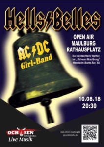 Die Kleinstadt Maulburg im Landkreis Lörrach ist nicht gerade eine Hochburg für Livekonzerte irgendwelcher Bands. Die großen Bands spielen meist im nahen Pratteln in der Schweiz und selbst die kleinen Regio-Bands machen um Maulburg für gewöhnlich einen Bogen und treten lieber im größeren Lörrach auf. Eine Handvoll Musikliebhaber rund um den Ochsen-Wirt Uwe Friese und dem Verein Ochsen Maulburg Musik Live hält aber tapfer die Flagge hoch und organisiert immer wieder kleinere Konzerte im Ochsen, oder eben auch als Open Air auf dem kleinen Rathausplatz. Zum zweiten Open Air in diesem Jahr hat man mit den Hell`s Belles eine AC/DC – Tribute Band eingeladen.
