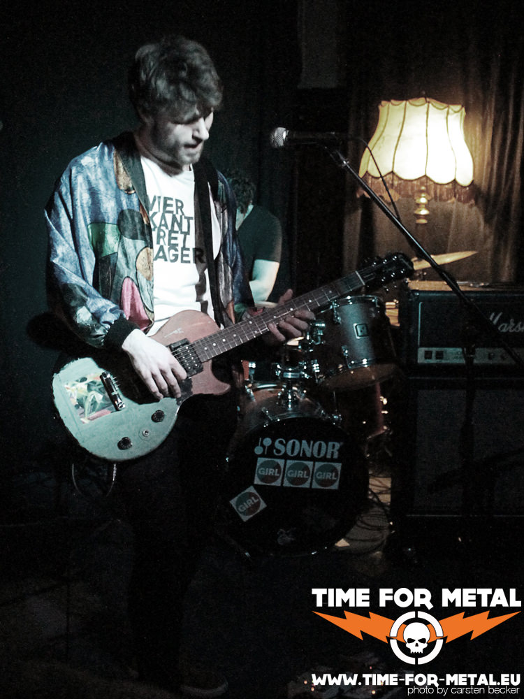 Den Anfang macht das Kölner Duo GIRL. Nach einem kurzem Drum-Intro, in dem der Drummer kurz seine technische Versiertheit demonstriert, betritt der extrovertierte Sänger und Gitarrist die Bühne und die Jungs geben ihr erstes Stück zum Besten. Als Sänger eines Duos einen leicht egozentrisch anmutenden Auftritt hinlegen und dann auch noch im Pelzmantel und Pelzmütze auf der Bühne stehen, macht vielleicht nicht auf alle Besucher den sympathischsten Eindruck. Die unglücklichen erste Impression gleicht er allerdings mit Virtuosität vielfach wieder aus. Zu keinem Zeitpunkt des gut dreißig minütigen Auftritts hat man das Gefühl, dass GIRL ein weiteres Instrument fehlt. Mehrstimmige Gitarrenarrangements setzt der Gitarrist gekonnt mit dem Einsatz von Looper und Sampler um, was gleichzeitig die tief-frequenten Anteile des Basses kompensiert. Das Fundament des Sounds bildet abwechslungsreiches und komplexes Drumming, sodass man auch bei den bescheidenen Verhältnissen im Limes einen vollen und ausgewogenen Sound geliefert bekommt. Musikalisch lässt sich der Stil von GIRL irgendwo zwischen Garage-Rock, Pop und Funk einordnen, was die überzeugenden Vocals des Sängers wunderbar komplettieren. Nicht nur seine technische Herangehensweise, sondern auch die Bühnenpräsenz und die Interaktion mit dem Publikum, sind durchaus überzeugend – bereits nach kurzer Zeit hat sich eine Hand voll Leute vor der Bühne eingefunden, die zur Musik tanzen und die Resonanz des Publikums ist auch insgesamt äußerst positiv.