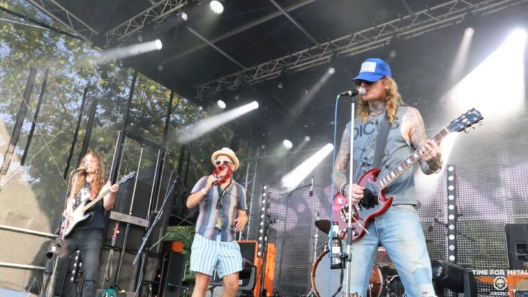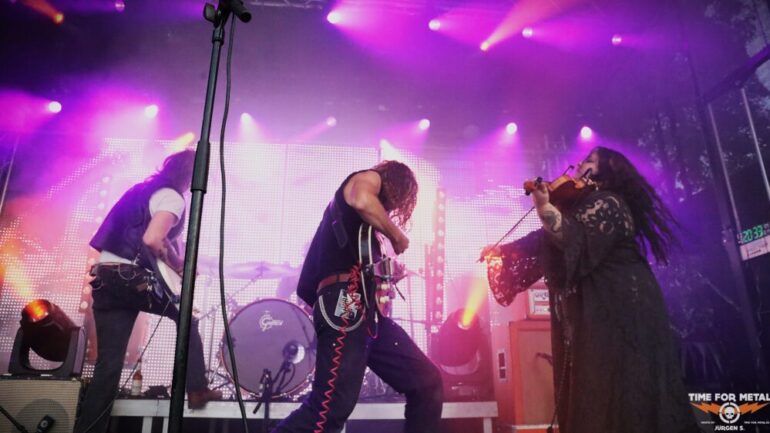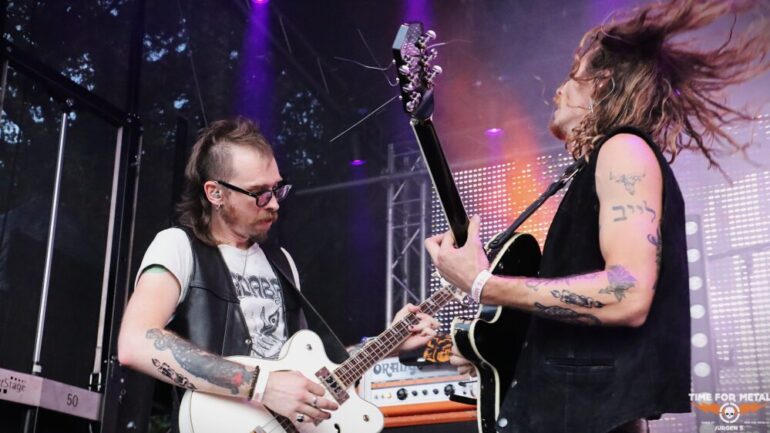 Den Abschluss des Tages macht Deathchant aus dem sonnigen Los Angeles. Ich hatte sie bereits letztes Jahr beim Freak Valley Festival gesehen. Ihr aktuelles Album heißt Thrones. Musikalisch erinnern sie mich ein wenig an Dead Lord aus Schweden, allerdings in einer raueren, ungeschliffenen Version. Ein Classic Rock / Heavy Metal-Hybrid, könnte man sagen. Für mich sind sie eine dieser Bands, die genauso gut auf einem klassischen Metal-Festival spielen könnten, weil sie sich geschickt zwischen den Welten bewegen.