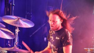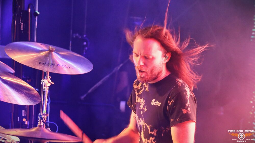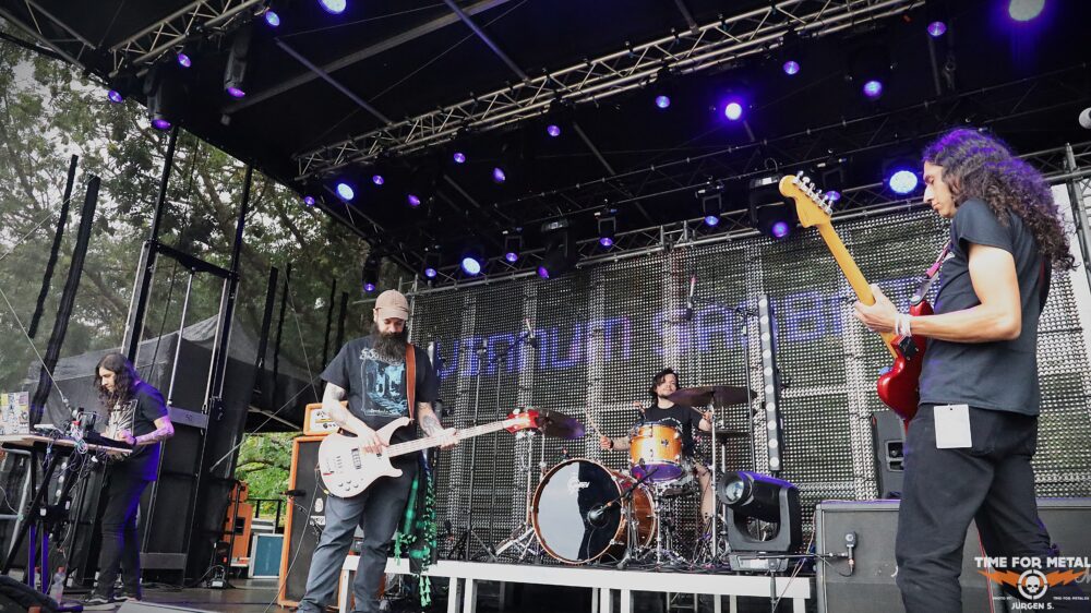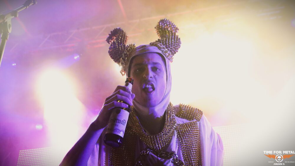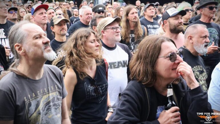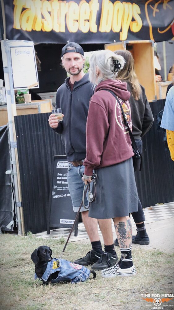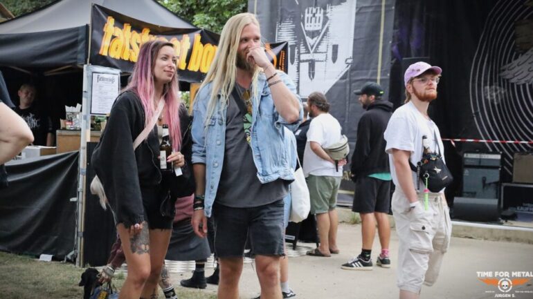 Die nachfolgenden Osnabrücker Eremit waren 2023 bereits als Late Night Special dabei. Damals musste ich aufgrund gesundheitlicher Probleme früh abbrechen. Im Nachhinein erfuhr ich, dass Eremit ebenfalls abbrechen mussten, da Soundcheck und Zeitprobleme herrschten. Never get a second chance? Hier ist die zweite Chance für Eremit auf dem Hoflärm – und wie! Eremit verweben Doom/Sludge Metal mit Elementen des Funeral Doom und servieren extrem langsame Riffs und Tempi. Es entsteht eine düstere (Fantasy-)Atmosphäre. Die Meister der Entschleunigung ziehen nicht nur mich in ihren Bann, sondern auch viele Fans, die den Mund nicht mehr zuzubekommen scheinen, weil sie diese obskure Atmosphäre einfach aufsaugen. Unverwechselbar beim Gig ist auch das Schwert, das zwischen den beiden Saitenhelden auf der Bühne steht und sich im Logo sowie auf diversen Band-Fotos wiederfindet. Was für ein Hammer-Gig, obwohl dort ein Schwert steht 😉