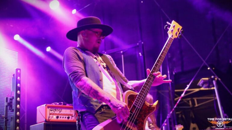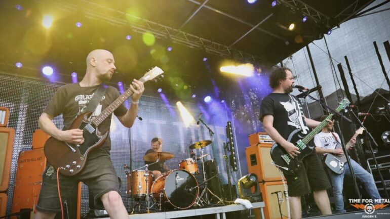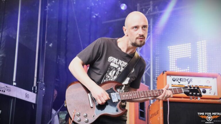 Kommen wir zum heutigen Headliner: Monolord. Klar, es kann nur einen geben, eben Monolord. Wahrscheinlich sind sie auch der Wettergott des Tages und sorgen hier auf dem Hoflärm dieses Jahr für trockenes Wetter. Die mächtigen Monolord sind der geilste Stoner-Doom-Gott aus Schweden. Persönlich habe ich sie schon öfter gesehen – erstmals auf dem Freak Valley Festival, zuletzt im vergangenen Jahr dort ebenfalls wieder. Monolord kennen viele als Trio, doch seit dem letzten Jahr ist ein zusätzlicher Mann an Gitarre und Keys dabei: Per Wiberg (bekannt von Kamchatka, King Hobo, Ex-Opeth, Ex-Spiritual Beggars, Ex-Candlemass). Ich lasse weitere Nennungen bewusst weg. Monolord beweisen einmal mehr, dass es nur einen Stoner-Doom-Gott gibt – Amen!